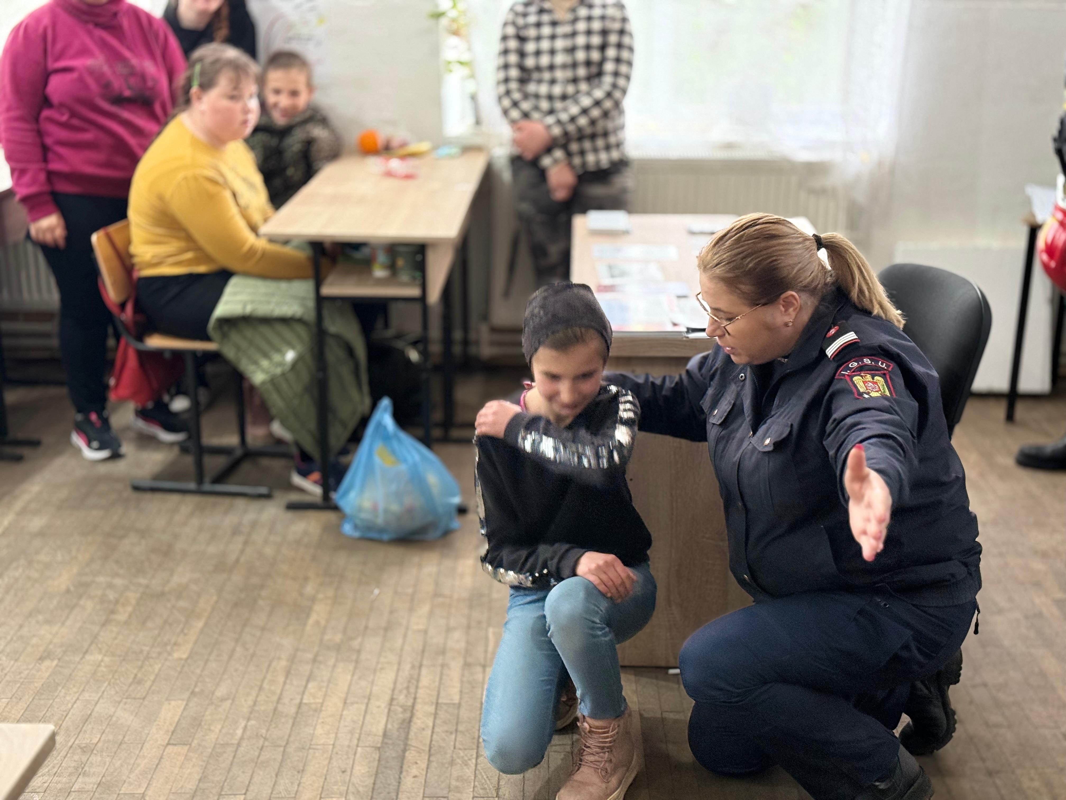 Pompierii le-au explicat și cum trebuie să reacționeze în cazul în care cel mic are nevoie de ajutor medical în urma unui accident casnic fie că vorbim de arsuri sau opăriri, înghițire corpi străini, traumatisme sau intoxicații, dar și în caz de incendiu sau cutremur.