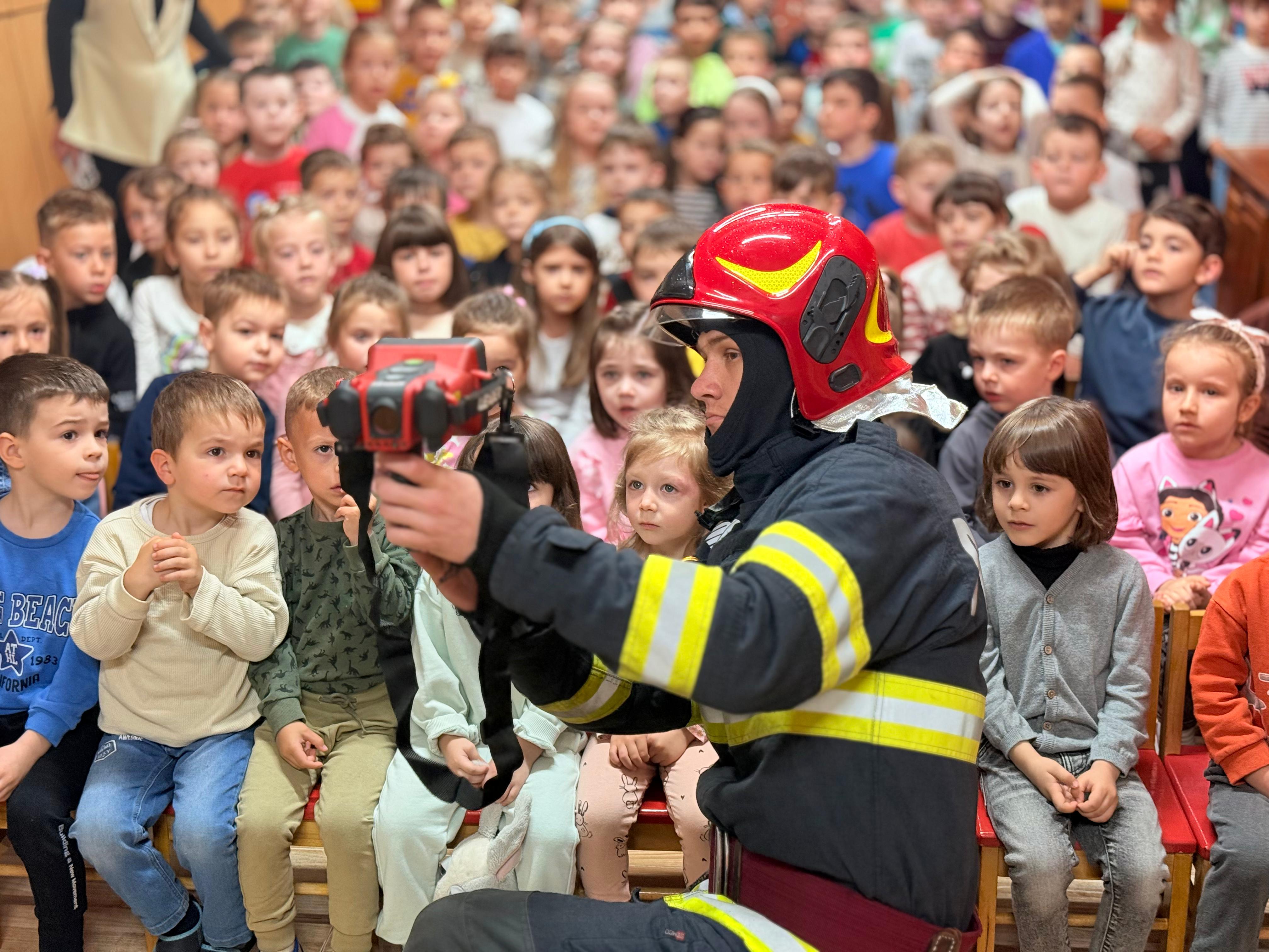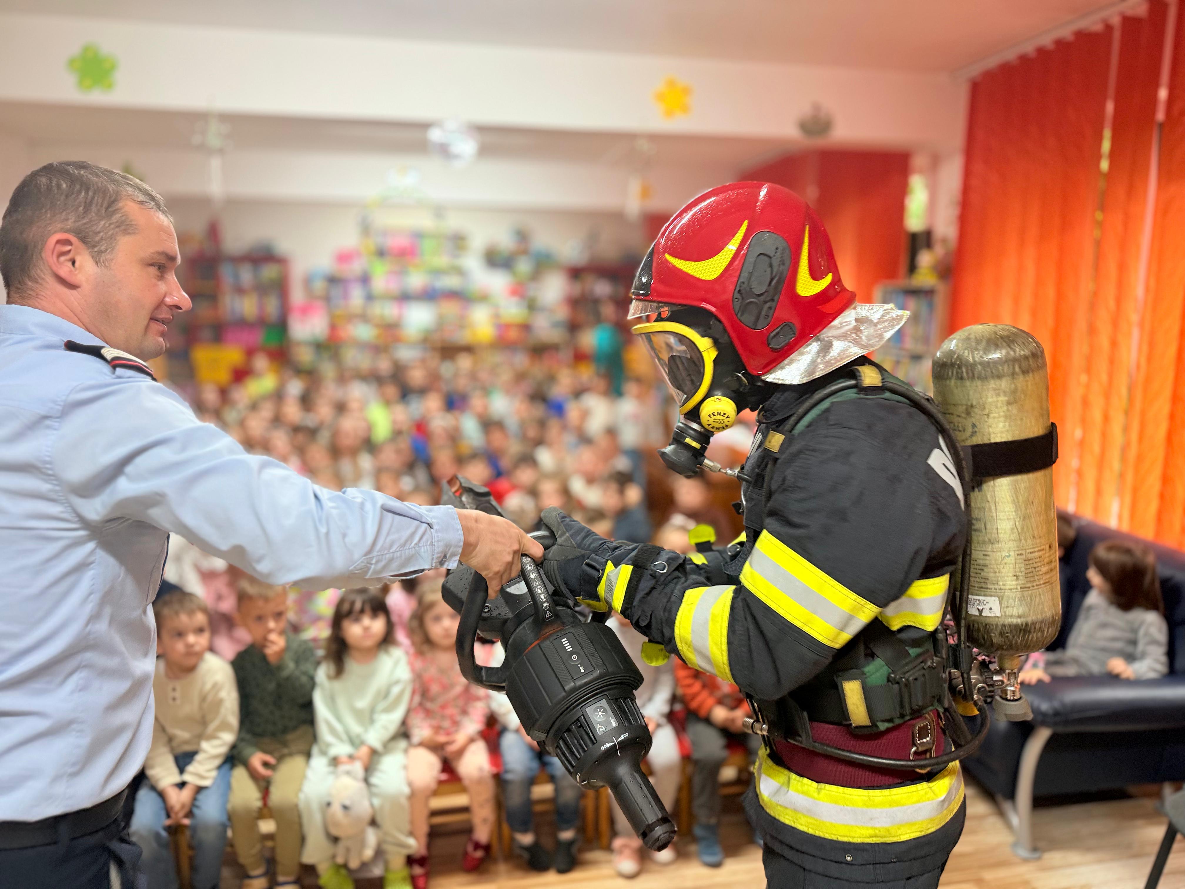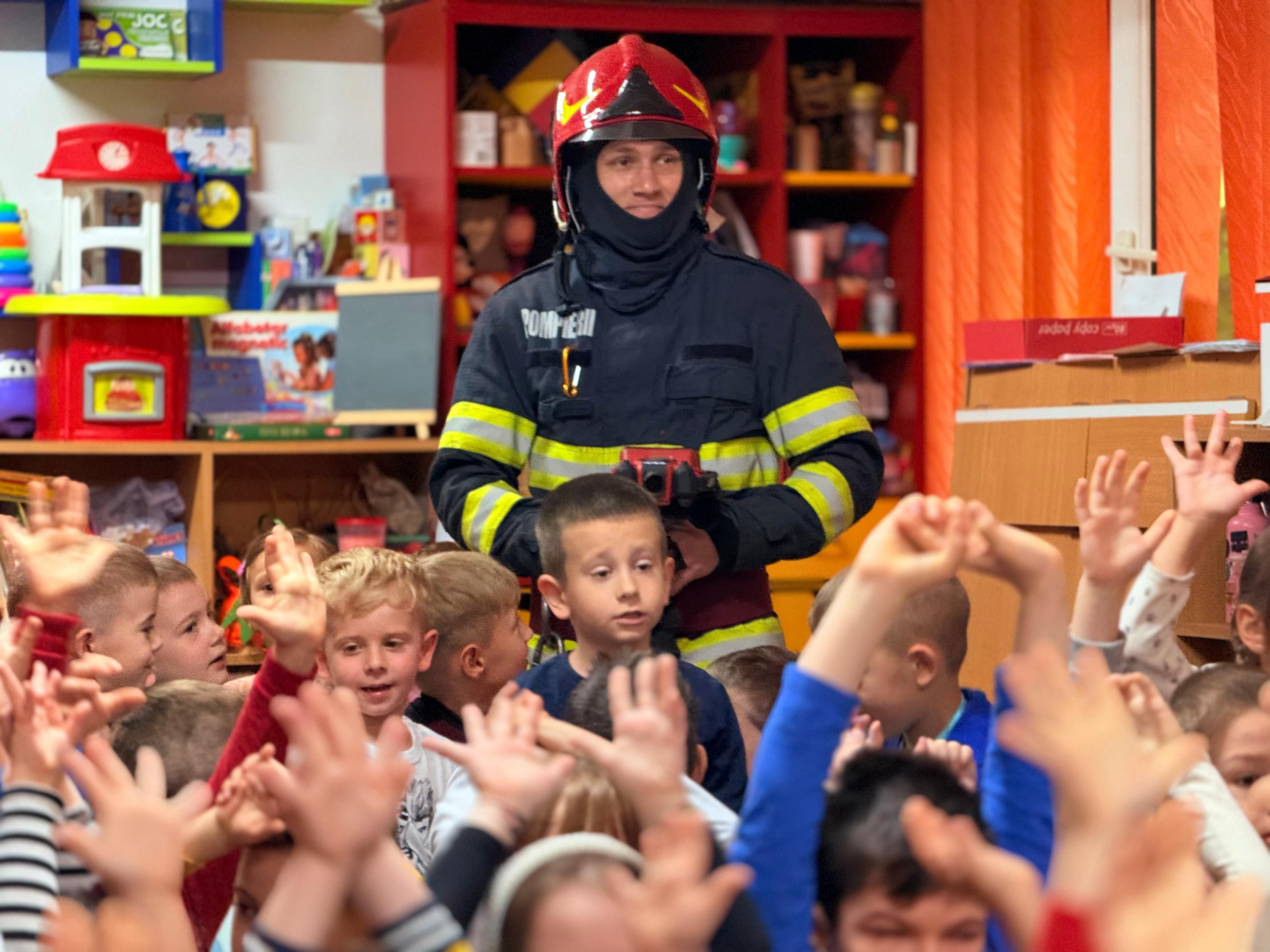 Timp de o oră, copiii au discutat cu pompierii, au pus întrebări și au aflat cum să se comporte în situații periculoase, fie că este vorba despre un incendiu, un accident casnic sau cum să se protejeze în caz de cutremur. Totodată , ei au avut ocazia să vadă o parte din echipamentele de protecție și intervenție folosite de salvatori în misiuni.