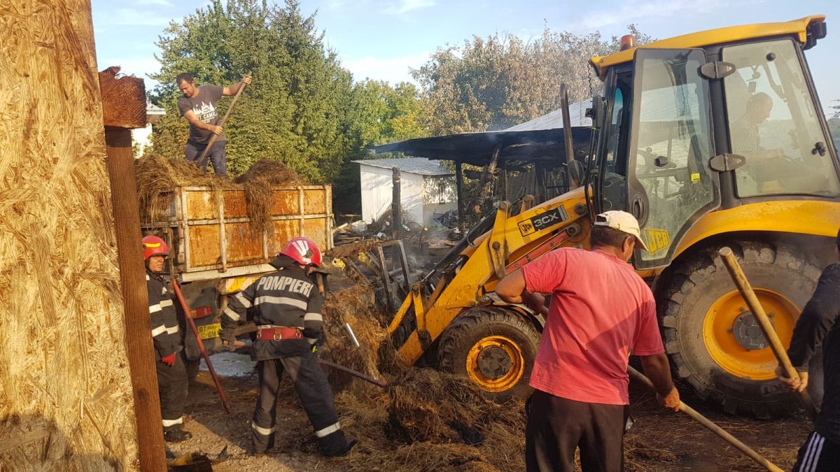 Intervenția este una de durată având în vedere faptul ca arde o cantitate mare de furaje si trebuie verificat fiecare metru pătrat pentru a elimina riscul de reaprindere.