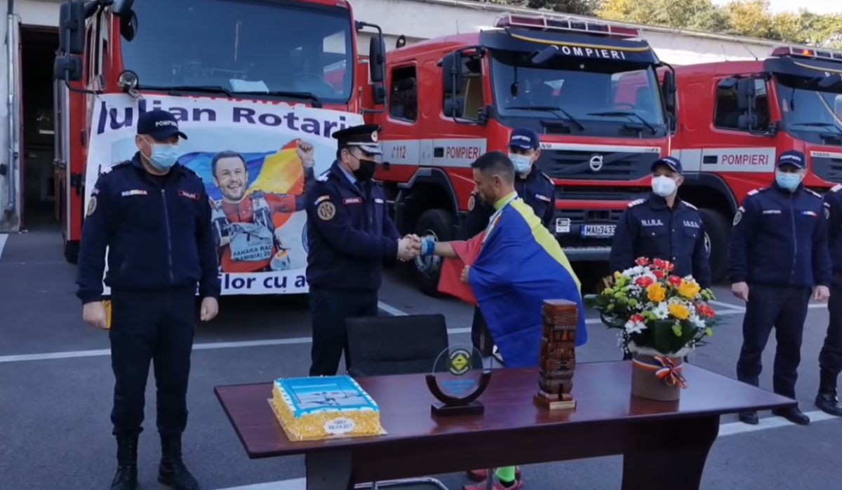 Pompierul campion a purtat drapelul tricolor în cele mai îndepărtate deșerturi ale lumii, alergând sute de kilometri pentru a susține cauza nobilă a Asociației Părinților Copiilor cu Autism din Botoșani.
