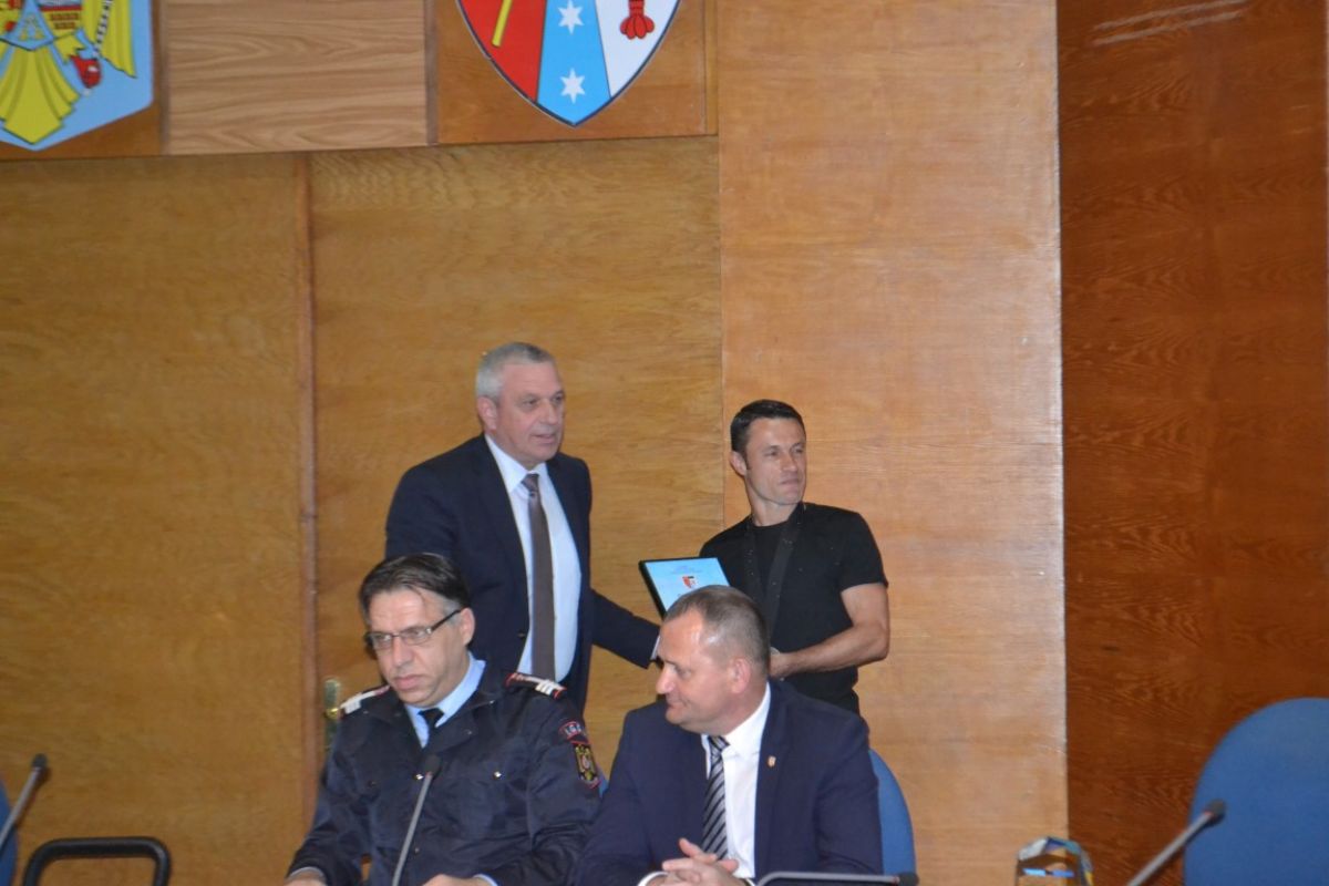 La ședința de astăzi de la Prefectură a fost prezent și pompierul Iulian Rotariu care a fost apreciat pentru rezultatele obținute în maratonul din deșert.