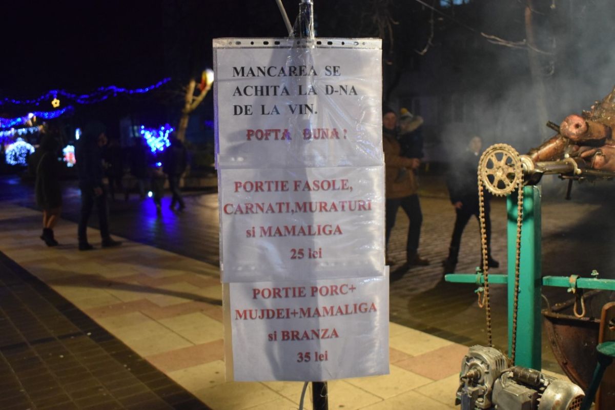 Pofticioșii au plătit 35 de lei pentru o porție de porc cu mujdei, mămăligă și brânză sau 25 de lei pentru fasole cu cârnați, murături și mămăligă.