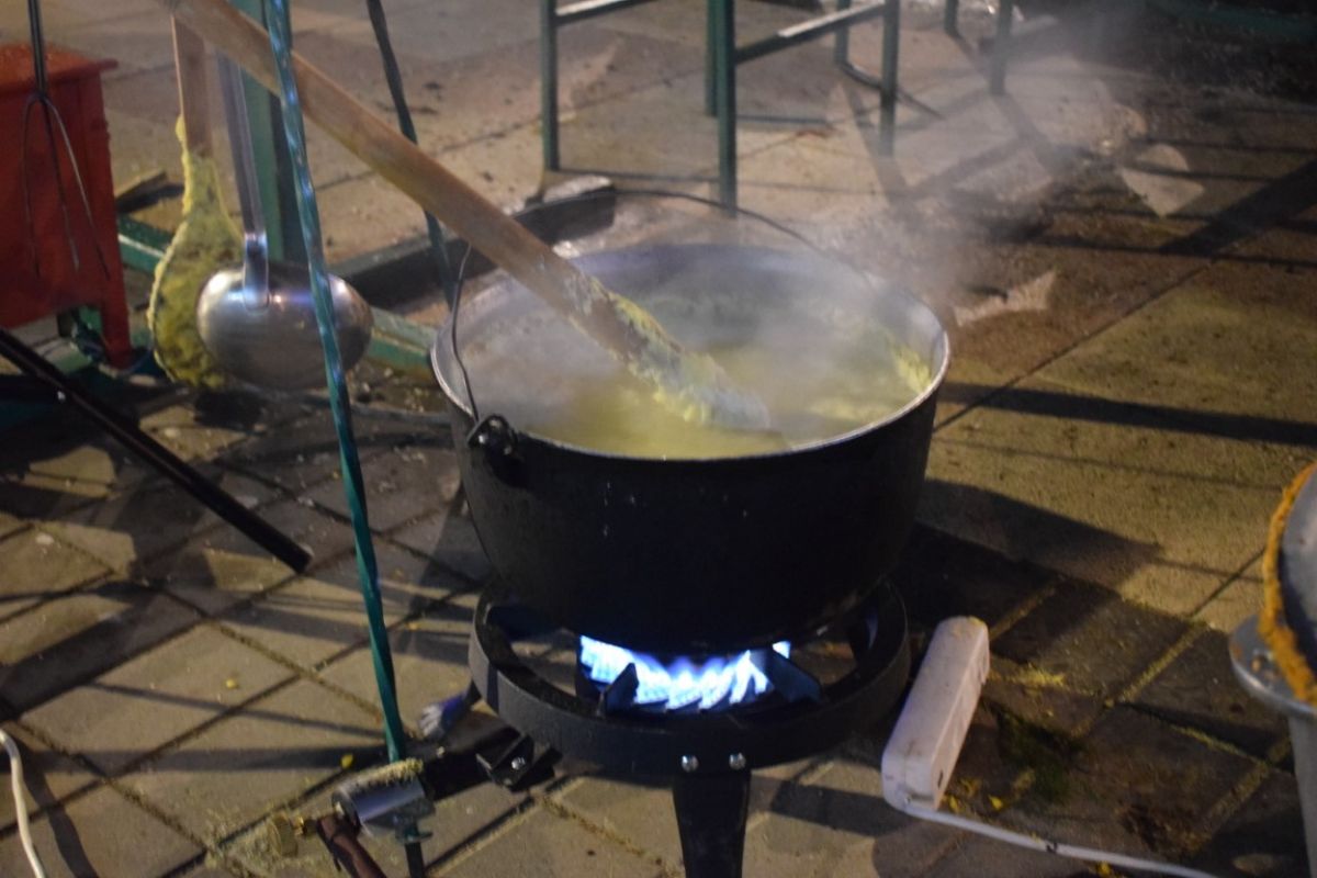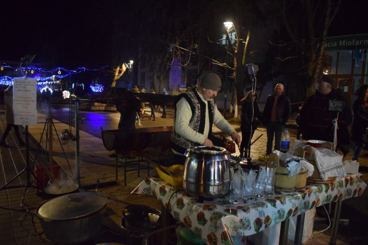 În fața standului unde se afla porcul la proțap s-a vândut vin fiert, la 4 lei paharul.