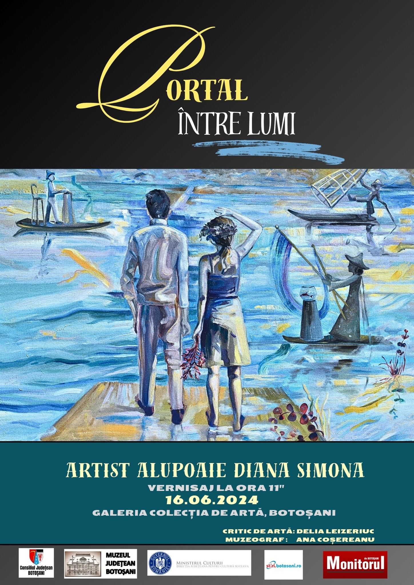 Muzeul Județean Botoșani - Secția de Artă Plastică și Etnografie găzduiește, în perioada 14 - 30 iunie 2024, expoziția „Portal între lumi", cu lucrări de pictură semnate de artista Diana Simona Alupoaie.