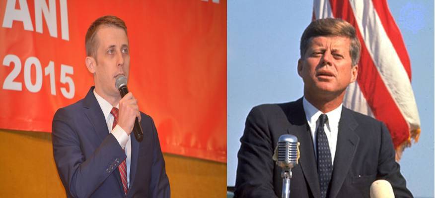 „Sunt însă în continuare cu sufletul alături de PSD Botoşani şi de echipa mea. Mă adresez dvs. de aici, din patria lui John Kennedy, unul dintre cei mai mari preşedinţi ai Statelor Unite şi îmi amintesc acum îndemnul pe care l-a adresat concetăţenilor săi: nu te întreba ce poate face ţara pentru tine, întreabă-te ce poţi face tu pentru ţara ta”, a afirmat Ovidiu Portariuc.