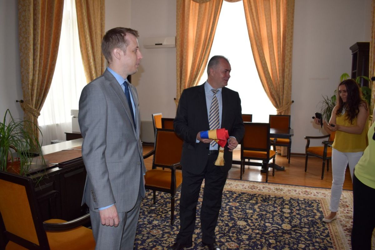 Noul primar a ajuns la Primărie în jur de 9:40 și a intrat direct în birou unde era așteptat de Ovidiu Portariuc. Au petrecut în jur de 10 minute, într-o discuție cu ușile închise.