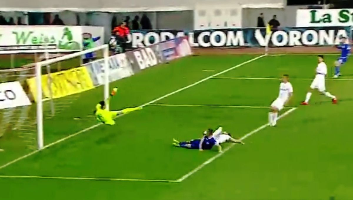 Ex-stelistul a preluat, a înaintat, după care a centrat foarte bine în fața porții, acolo unde se afla Serediuc. Acesta din urmă a lovit bine balonul, numai că Alberto Cobrea (26 de ani), cu un reflex absolut senzațional, a deviat în corner.
