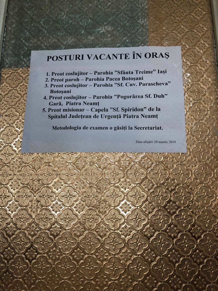De asemenea, posturi vacante de preot se găsesc și în alte zone din Moldova. Mai precis, Parohia Sfânta Treime din Iași caută un preot coslujitor, la fel ca Parohia Pogorârea Sfântului Duh din Piatra Neamț.