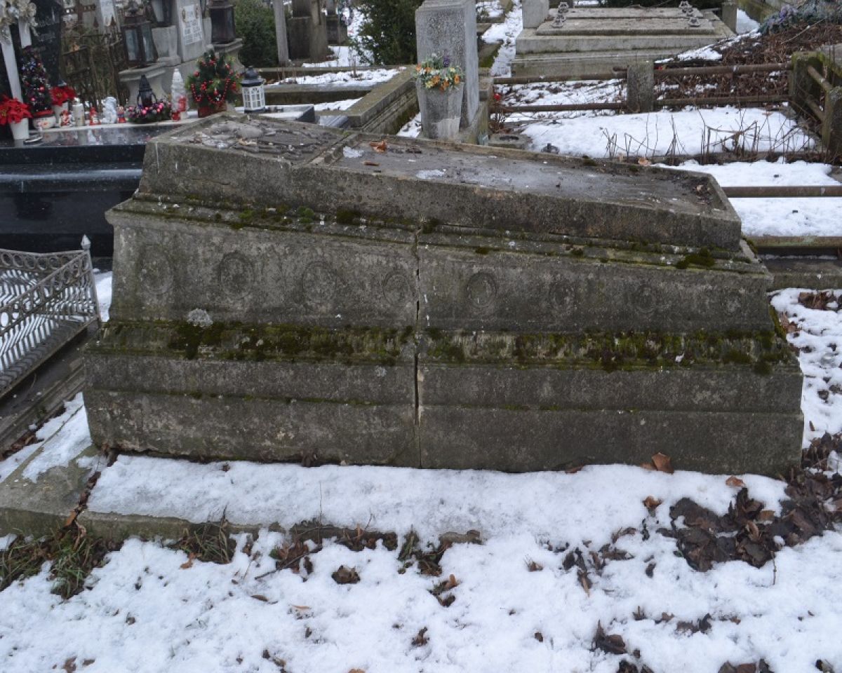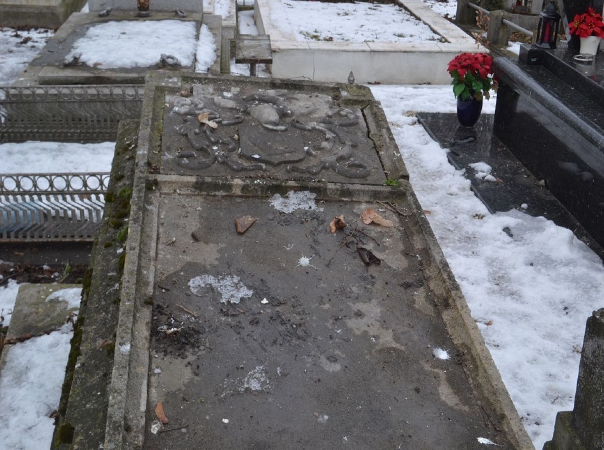 Conform datelor găsite în monografia orașului Botoșani, pe mormânt se găsește montată o placă din marmură cu blazonul familiei, ce conține o pană ținută într-o mână, o sabie în alta și două aripi ce pornesc dintr-o cupă. Această placă încă există pe mormânt, dar nu în cea mai bună stare. Ei bine, aceste lucuri, măreția și grandoarea sarcofagului, ce se observă de la depărtare, vor dispărea probabil peste ceva timp. având în vedere că, nu mai există persoane care să se îngrijească de aceste monumente.