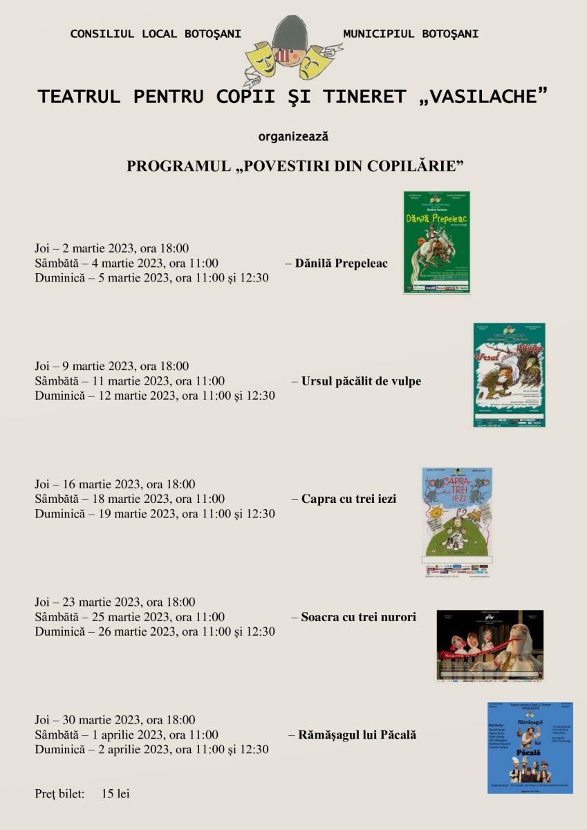 Spectacolele aferente Programului „Povestiri din copilărie" 2023: