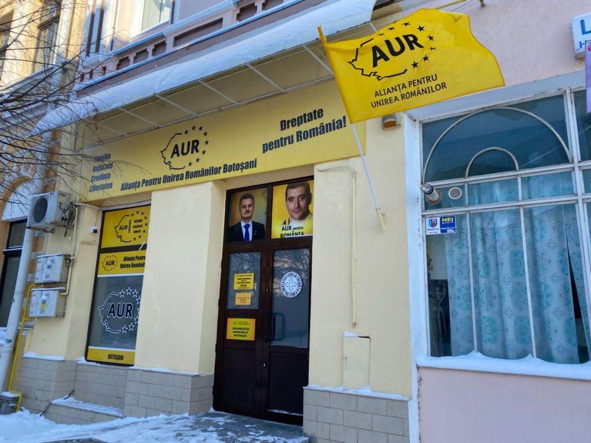 Patriotismul dă pe afară la sediul AUR Botoșani. Numai loc pentru tricolor nu s-a găsit, dar nu-i asta o mare problemă
