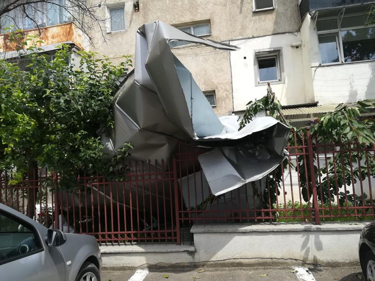 Problema acoperișului de la fosta Direcție a Muncii doborât de furtună a fost rezolvată: se odihnește în curtea unui bloc din apropiere