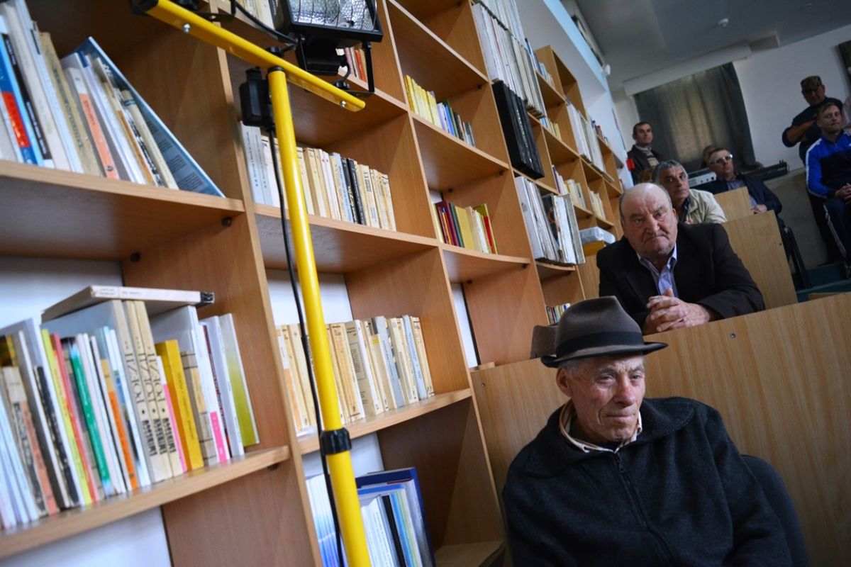 Amfiteatrul Laurențiu Ulici de la Memorialul Ipotești - crâmpei de campanie electorală, sătenii abia mai încap printre atâtea cărți, niște amărâte piese de decor