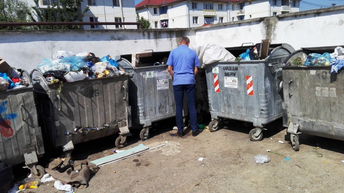 Bănuim că nenea din imagine urinează selectiv, că înaltul spirit gospodăresc care-l caracterizează nu i-ar permite să transforme pubelele în toalete ecologice