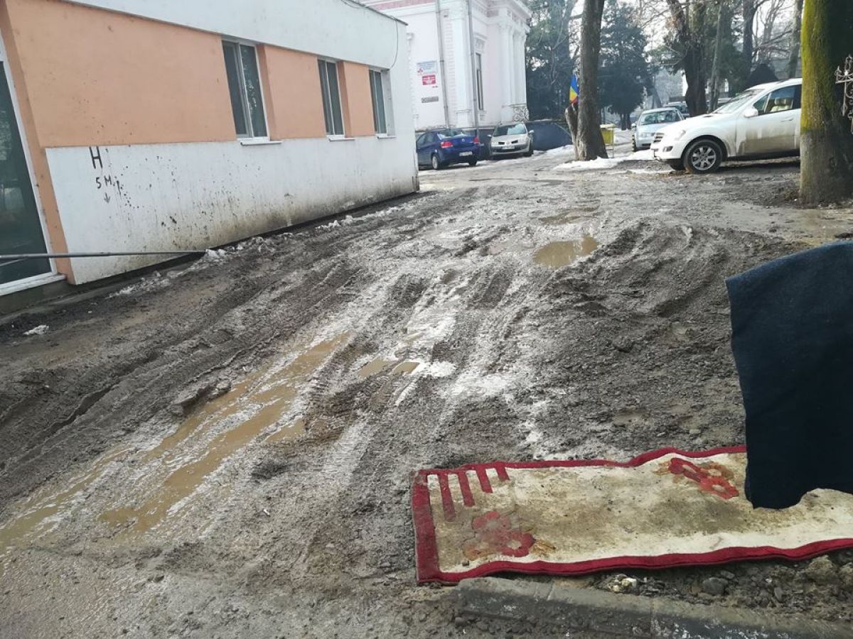 Mai nou, la Botoșani aleile se asflatează prin ”montarea” câtorva covoare. #ȘîEu!