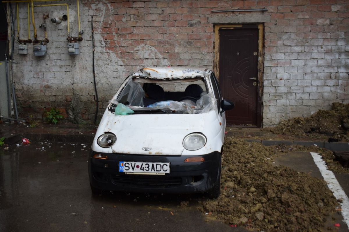Asta este fericita mașină care a scăpat de muncitorii care prăbușesc străzi la Botoșani