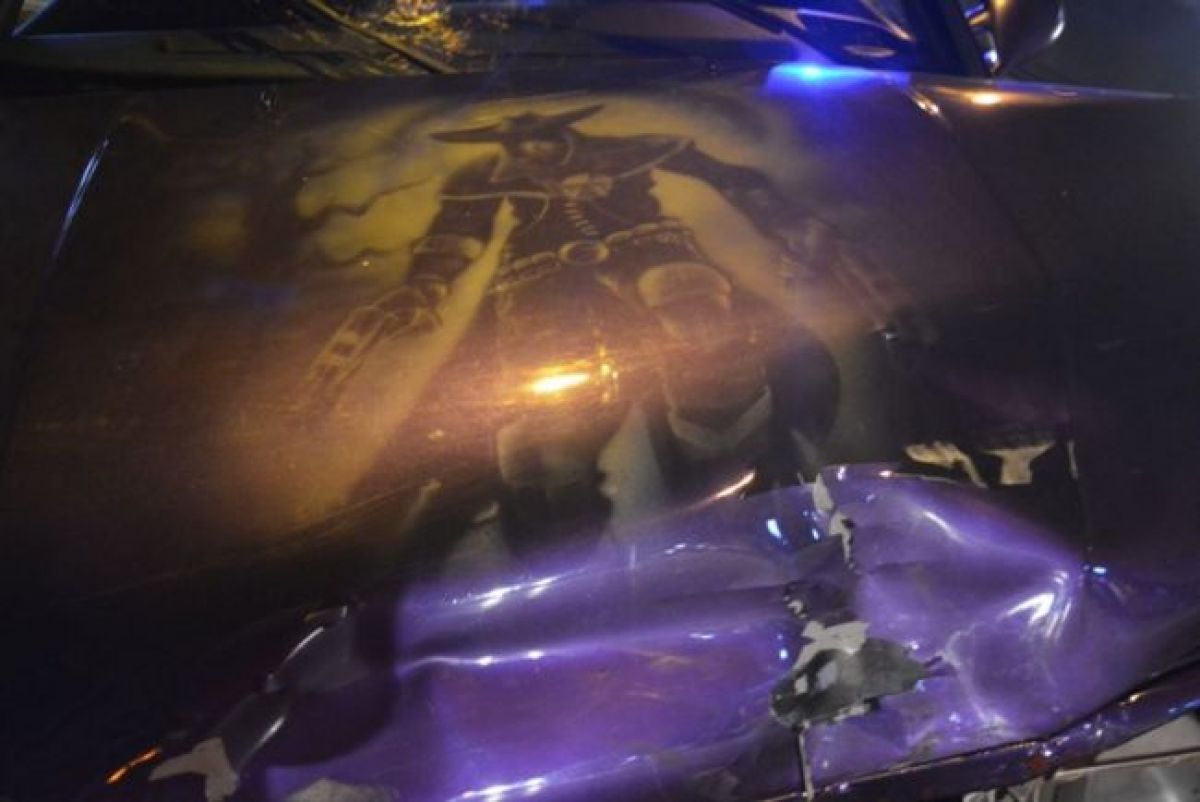 Desen de pe capota VW-ului tunat care s-a izbit miercuri seară cu un Opel