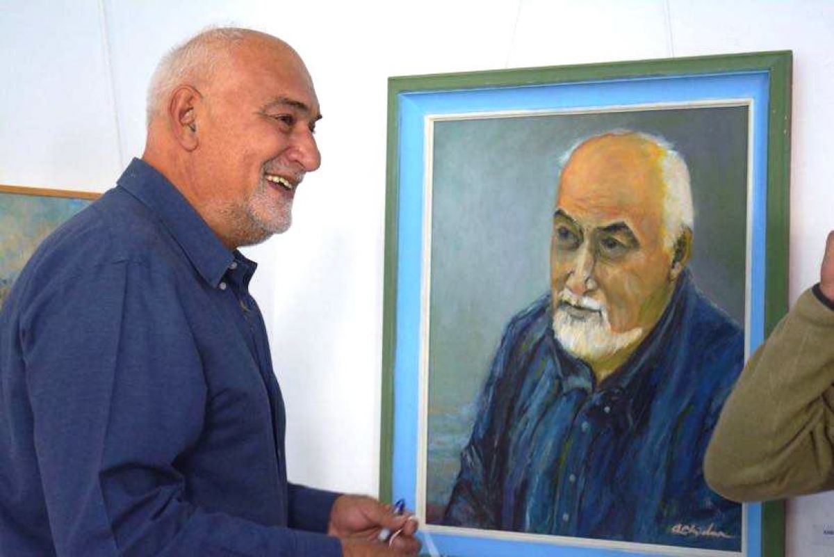 Varujan Vosganian admirându-se într-un tablou de la Galeriile de Artă ”Ștefan Luchian” din Botoșani