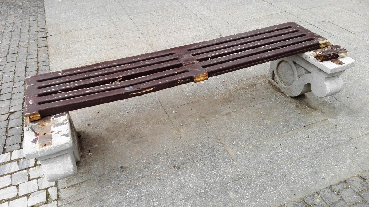 Bancă din Centrul Vechi Botoșani, locul în care parcă totul se... învechește mai repede