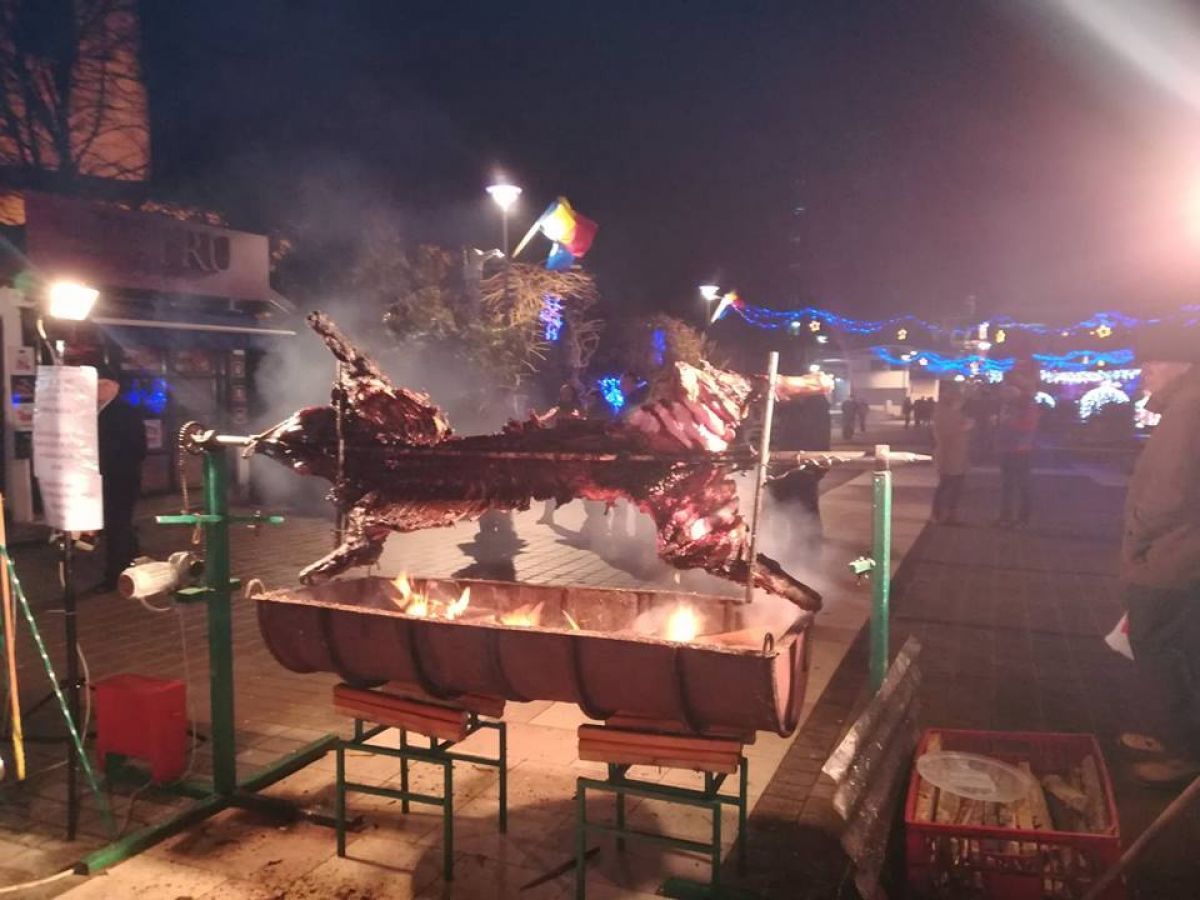 Porcul lui Titi Simion, adevărata vedetă a revelionului în stradă de la Botoșani