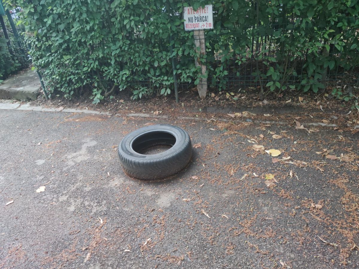 Roată lăsată-n urmă sub formă de avertisment: nu parcați!