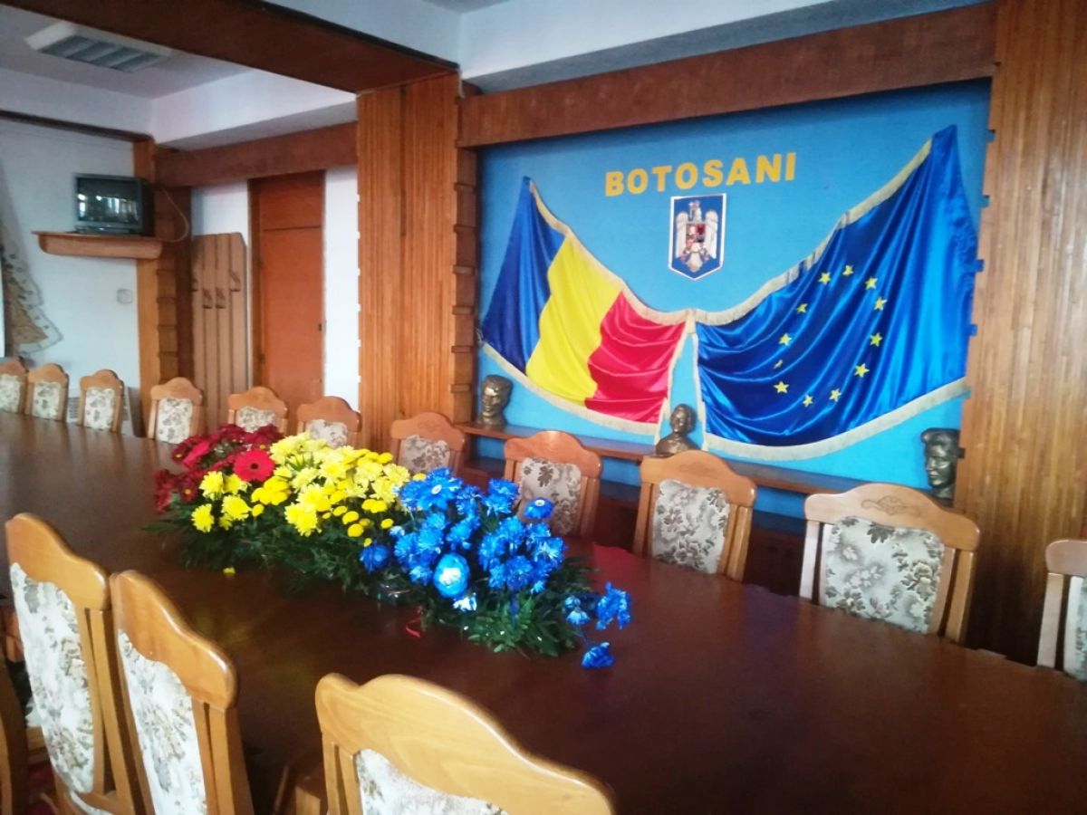 Chiar dacă nu e nimeni prin sala de ședințe de la Palatul Administrativ, măcar avem flori în tricolor. Și ceva busturi, bineînțeles
