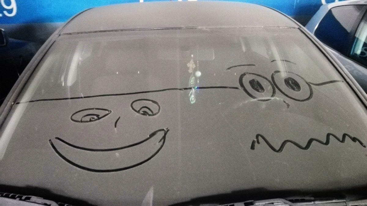 Uite așa se nasc operele de artă, din mult praf și din... parbriz