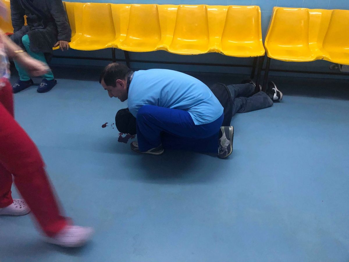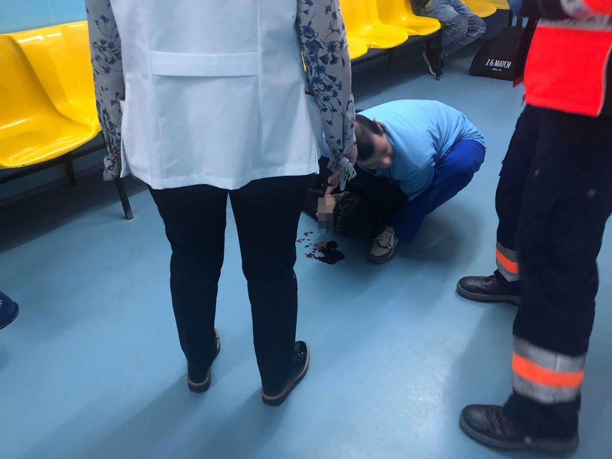 Toți ceilalți din jur s-au speriat, mai ales că în cădere, bărbatul s-a lovit cu capul de pardoseală, suferind un traumatism deschis.