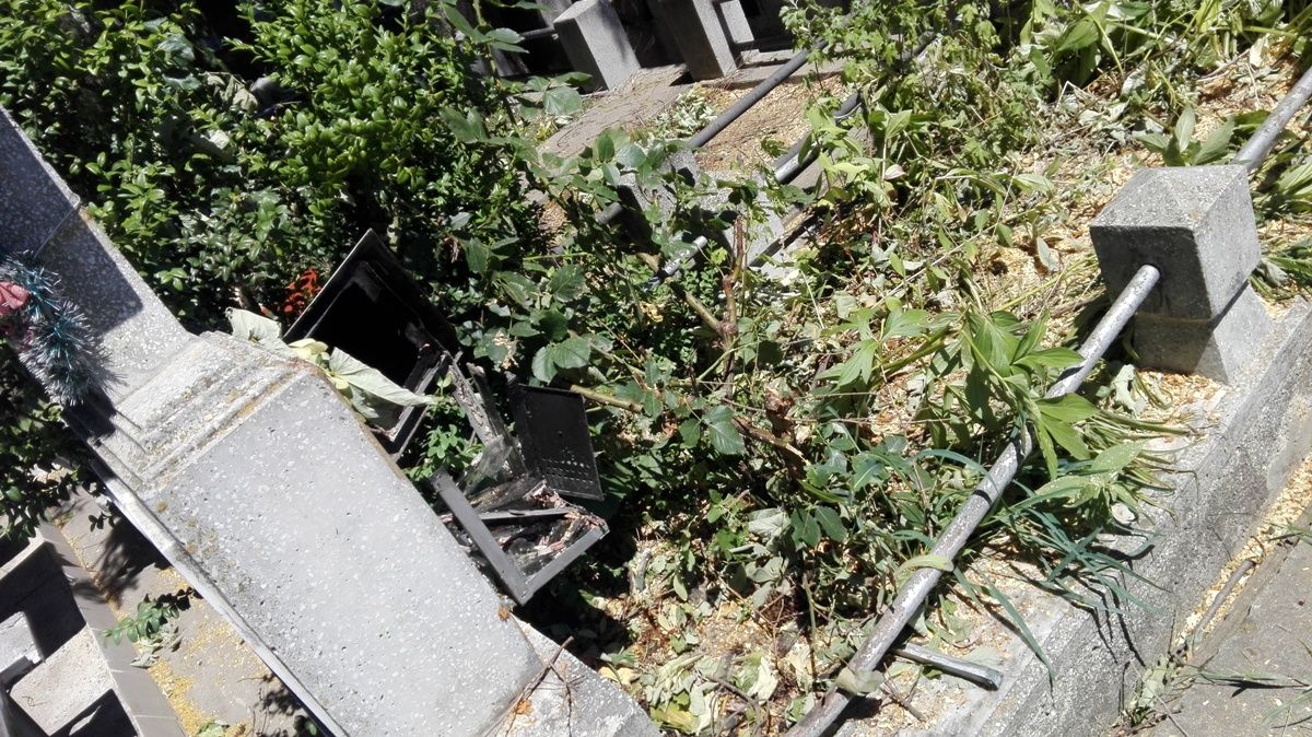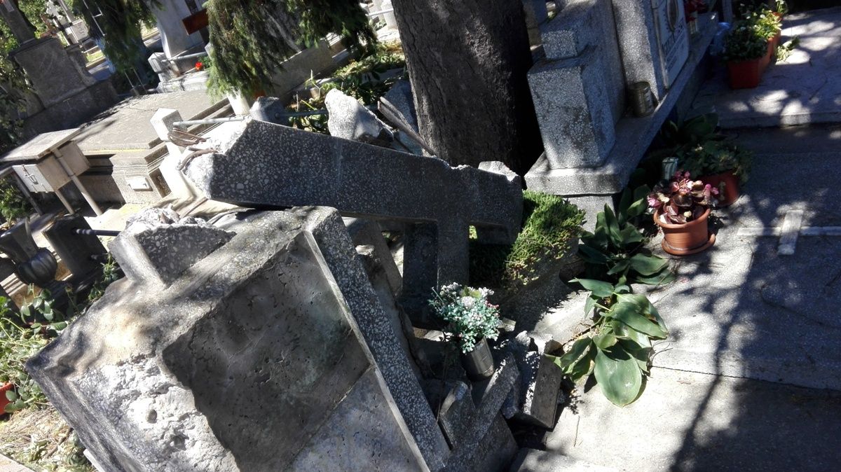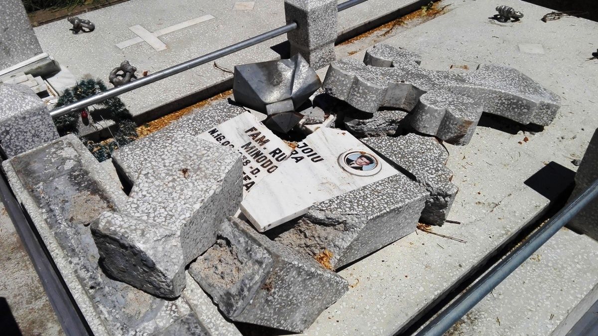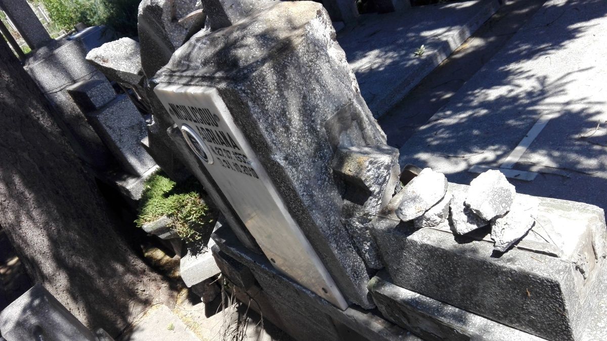 Aproape toate au fost sfărâmate de un arbore care în cădere a agăţat un brad şi s-a prăbuşit peste locurile de veci de pe aleea care duce spre Stadionul Victoria. În total sunt zece monumente funerare distruse. Șase dintre acestea mai pot fi refăcute, însă altele patru necesită practic lucrări total noi. SC Urban Serv SA a identificat concesionarii respectivelor locuri de veci, iar conducătorii unităţii s-au întâlnit luni cu aceştia pentru a vedea ce este de făcut mai departe.