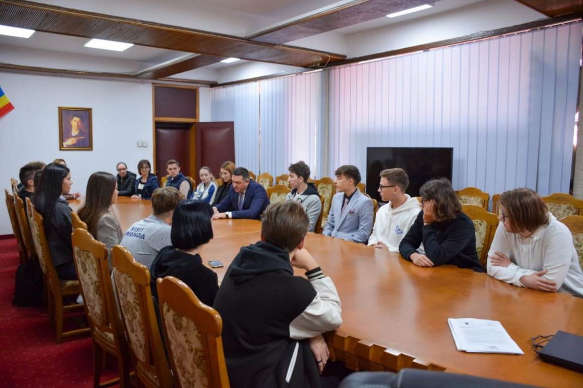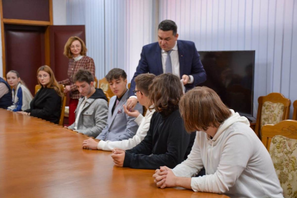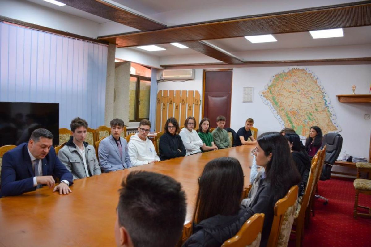 În sala Ștefan Luchian din Palatul Administrativ, Sorin Cornilă le-a prezentat elevilor activitatea Instituției Prefectului și le-a răspuns la întrebări.