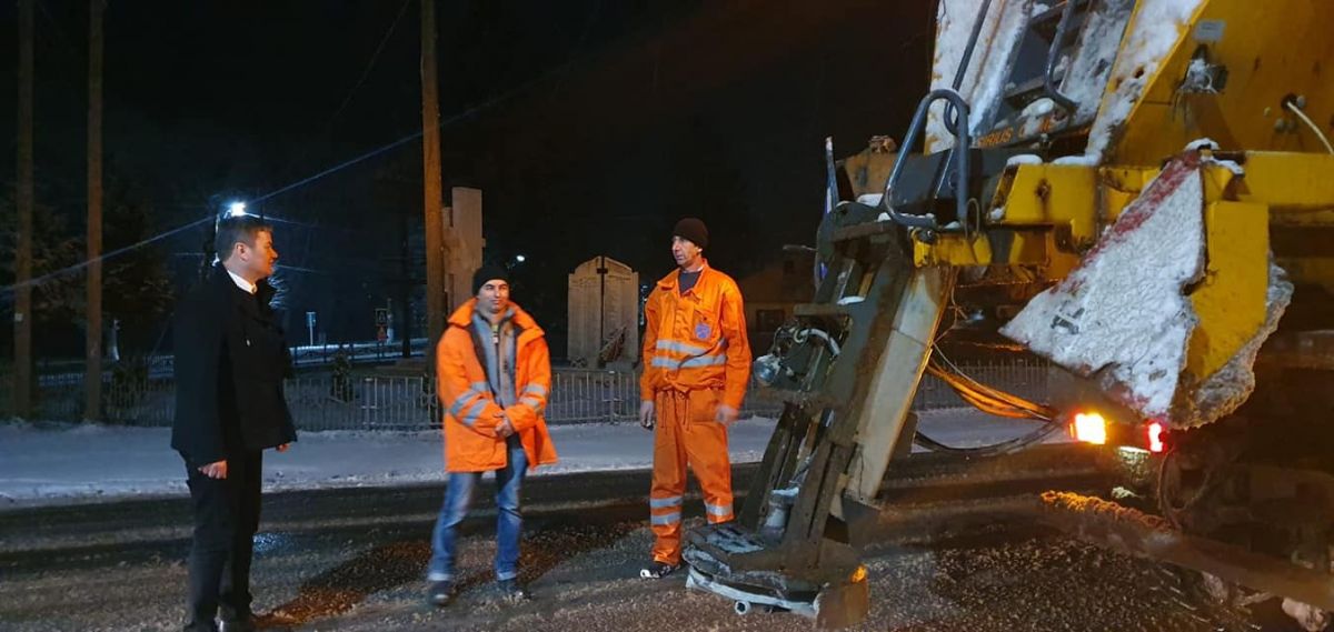 Prefectul județului, Dan Șlincu, în calitate de președinte al Comitetului Județean pentru Situații de Urgență, a verificat aseară modul în care angajații Secției Drumuri Naționale intervin în zonele în care prima ninsoare a creat probleme participanților la trafic.