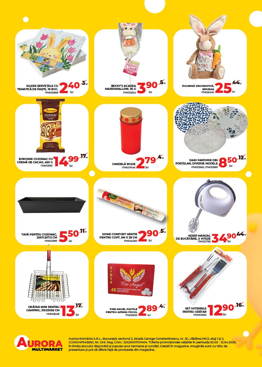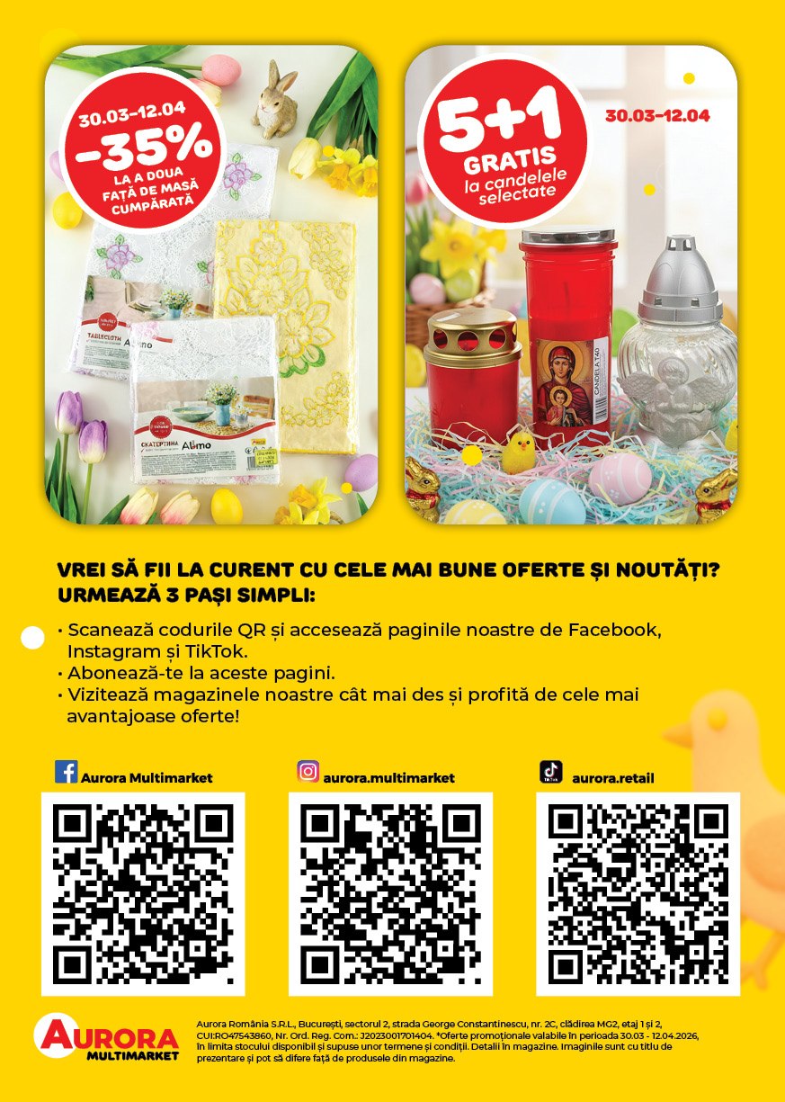 Oferta este valabilă doar până pe 12 aprilie, în toate cele 64 de magazine Aurora Multimarket din țară.