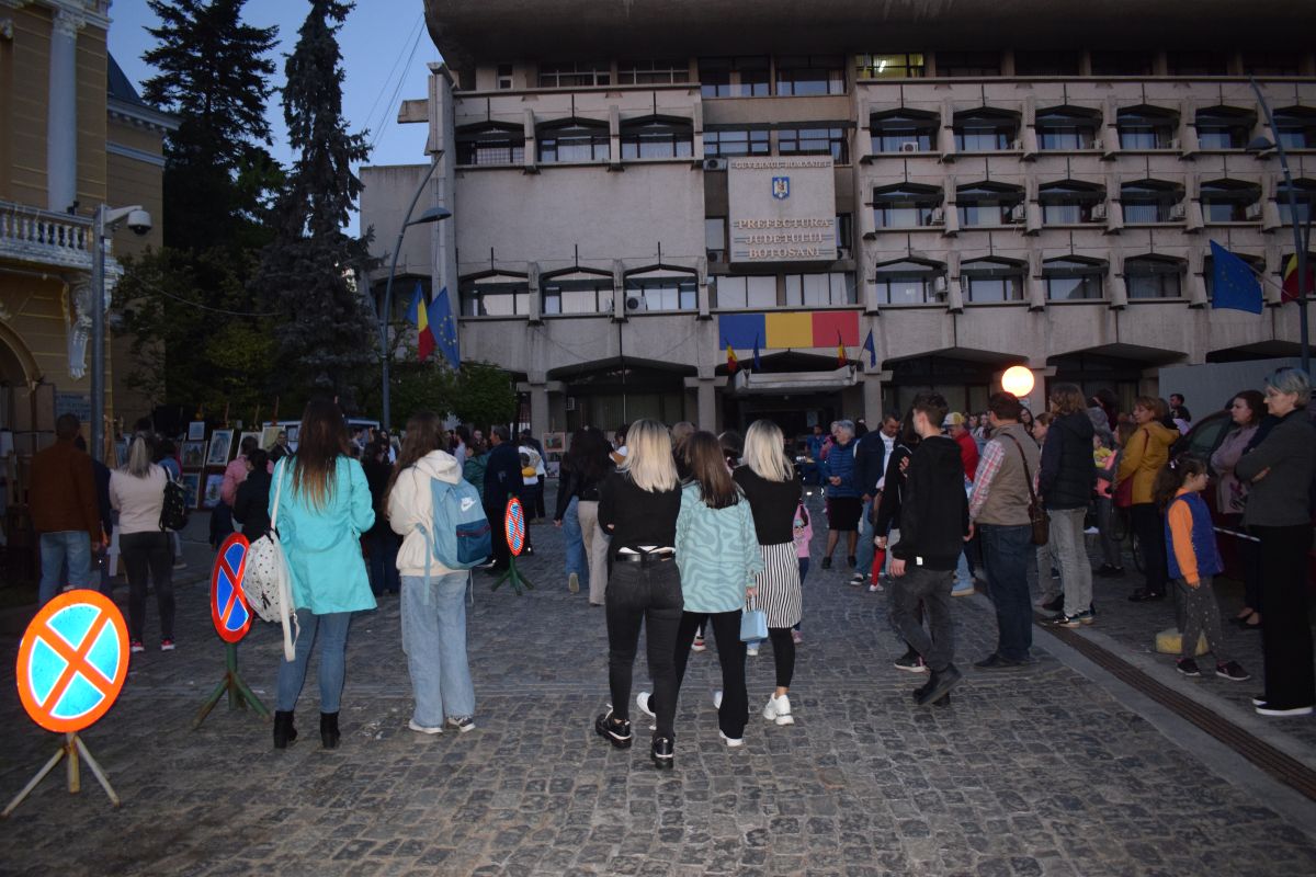 Începând cu ora 21:00, botoșănenii au avut parte de un spectacol de video mapping. S-au adunat în Piața Revoluției zeci de elevi de la Liceul de „Artă”, profesori, dar și o mulțime de alți botoșăneni.