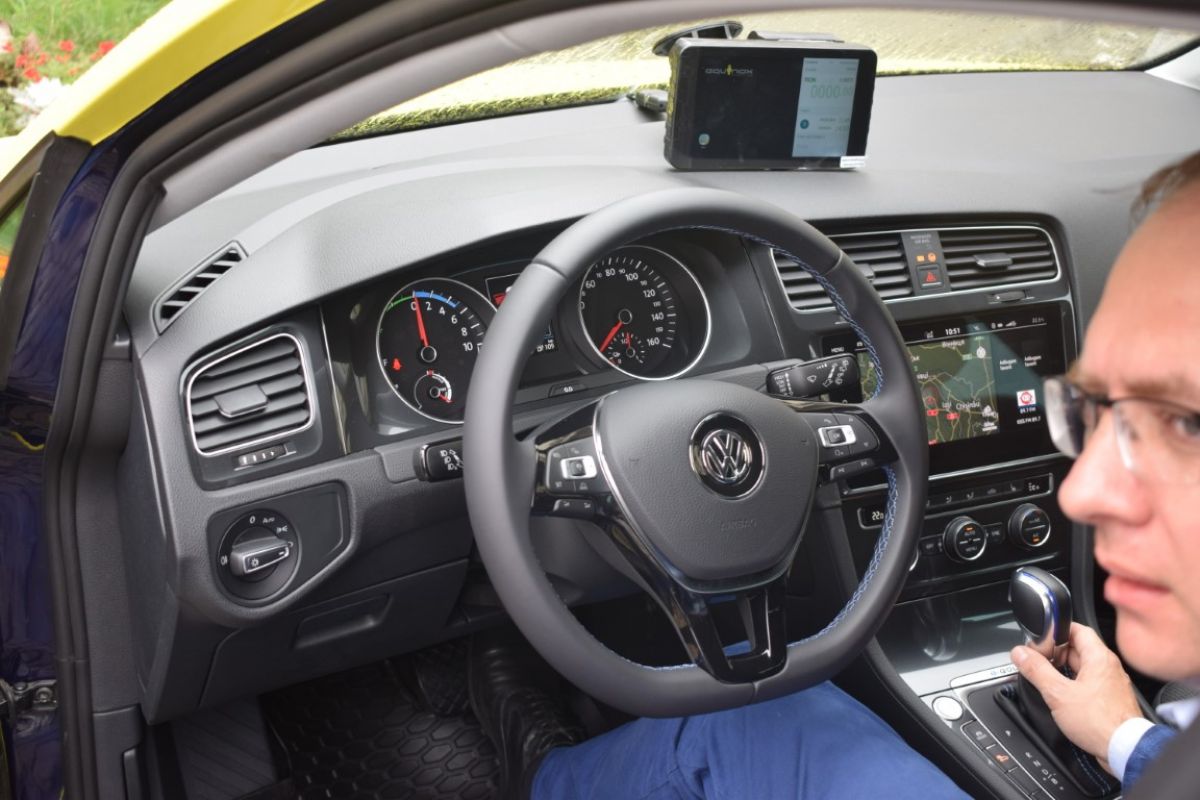 Este un VW Golf care-i aparține omului de afaceri Gheorghe Hogaș, considerat pionier pentru introducerea mașinilor electrice în taximetrie, la Botoșani.