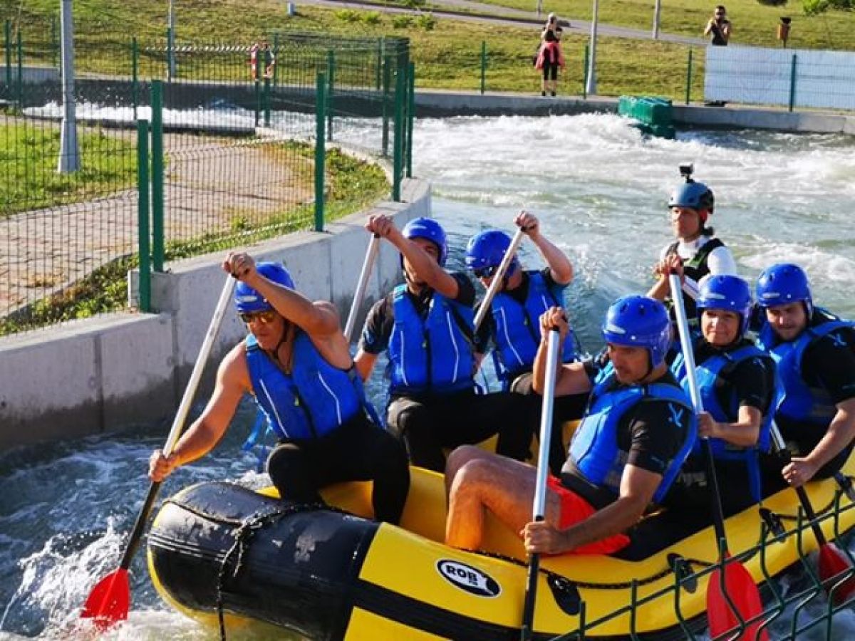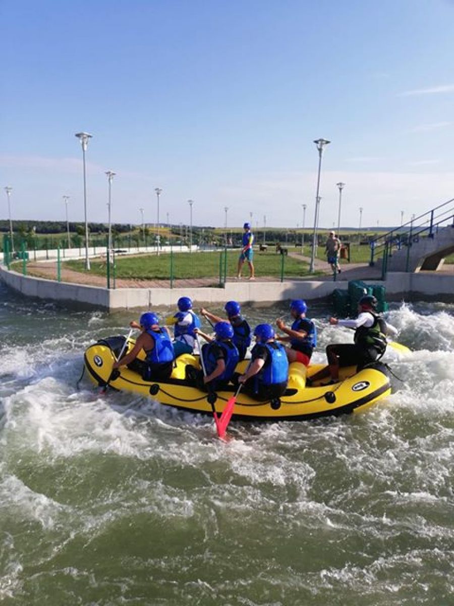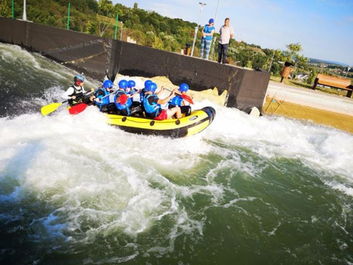 În săptămâna raftingului organizată de administratorii parcului, prima serie care a testat râul artifical a făcut-o astăzi, 25 iulie 2019.