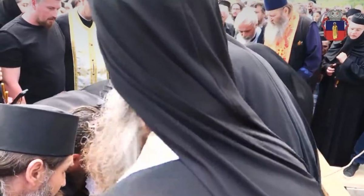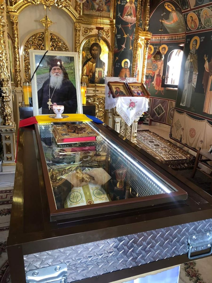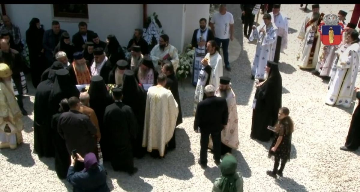 Slujba înmormântării a fost precedată de săvârșirea Sfintei Liturghii de către Înaltpreasfințitul Părinte Teodosie, Arhiepiscop al Tomisului, alături de un sobor de preoți și diaconi, la altarul de vară al așezământului monahal, așezat sub ocrotirea Sfintei Mari Mucenițe Ecaterina.