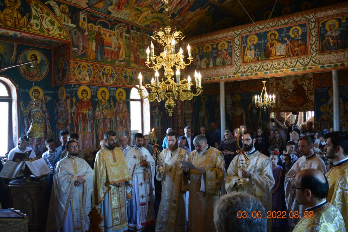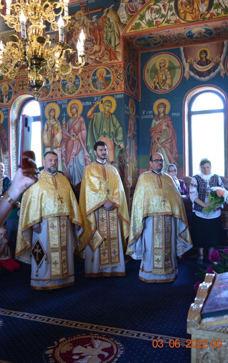 Ierarhul a oficiat Sfânta Liturghie împreună cu un distins sobor de preoți printre care s-au numărat Părintele Protopop Petru Fercal, Părintele Drobotă Fredolin, sef al Cercului Misionar „Sf. Mina” din Albești, preoții din parohiile vecine, prieteni ai parohiei, precum și preotul militar Teodor Cenușă, fostul paroh.