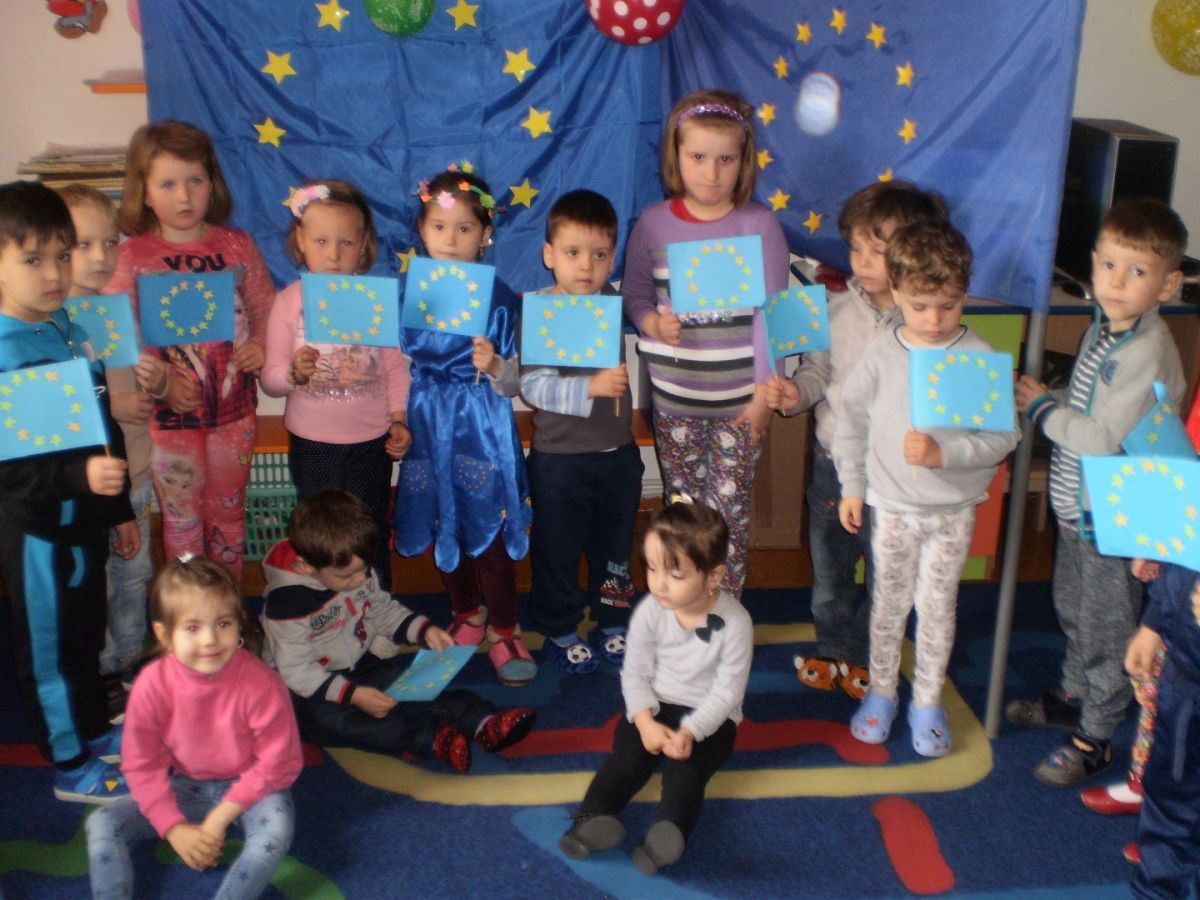 Pentru această zi, elevii s-au pregătit intens prin confecţionarea de stegulețe, bărcuţe din hârtie pentru a călători în Europa, au desenat o horă a copiilor fericiţi. Pentru că au aflat care sunt ţările din Uniunea Europeană, au porrnit să-şi verifice cunoştinţele prin joc, au construit un castel mare pentru toţi copii Europei., au confecţionat felicitări. Toate aceste activități fac parte din proiectul tematic,, Europa e şi a noastră!”.Scopul proiectului este educarea copiilor în vederea cunoaşterii semnificaţiei şi a simbolurilor Uniunii Europene, îmbogăţirea sistemului de cunoştinţe cu informaţii despre Uniunea  Europeană, cunoaşterea semnificaţiei zilei de 9 Mai, cunoaşterea simbolurilor UE, cunoaşterea istoricului formării UE, audierea şi intonarea imnului UE, realizarea unor  desene frumoase şi exprimarea prin culoare a sentimentelor de apartenenţă a României la marea familie europeană, exprimarea liberă a cele învăţate, transmiterea şi altora a  cunoştinţelor asimilate despre UE. În cadrul   proiectului  s-au desfăşurat activităţi care să permită  îmbunătăţirea comunicării, a încrederii, a înţelegerii, a solidarităţii şi a toleranţei reciproce; facilitarea accesului liber la educaţie şi  exprimare  a copiilor prin intermediul activităţilor multiculturale şi educative în spiritul respectului faţă de diversitate;