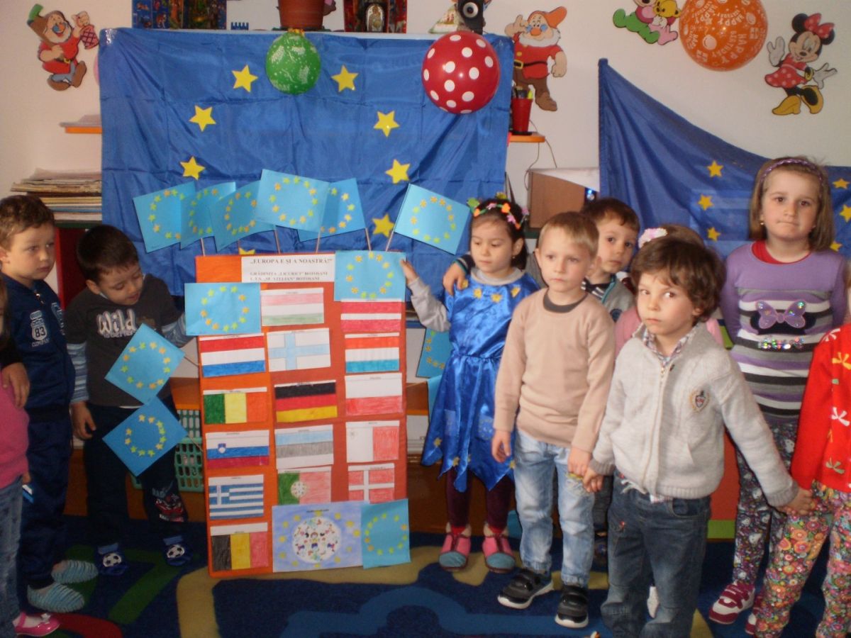,,Ziua Europei” a fost sărbătorită printr-o vastă activitate educativă de preşcolarii Grădiniţei nr. 4 ,,Licurici” Botoşani –structură a Şcolii Gimnaziale ,,Sfânta Maria” Botoşani, coordonaţi de profesorul Nela Miron şi educ. Adelina Nădejde,în parteneriat cu Liceul Tehnologic Special ,,Sf. Stelian” Botoşani - profesorul Ioan Miron şi Biblioteca Judeţeană ,,Mihai Eminescu” Botoşani.
