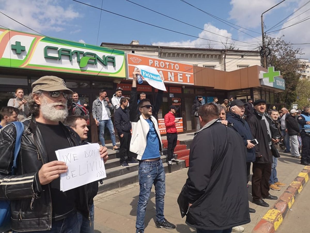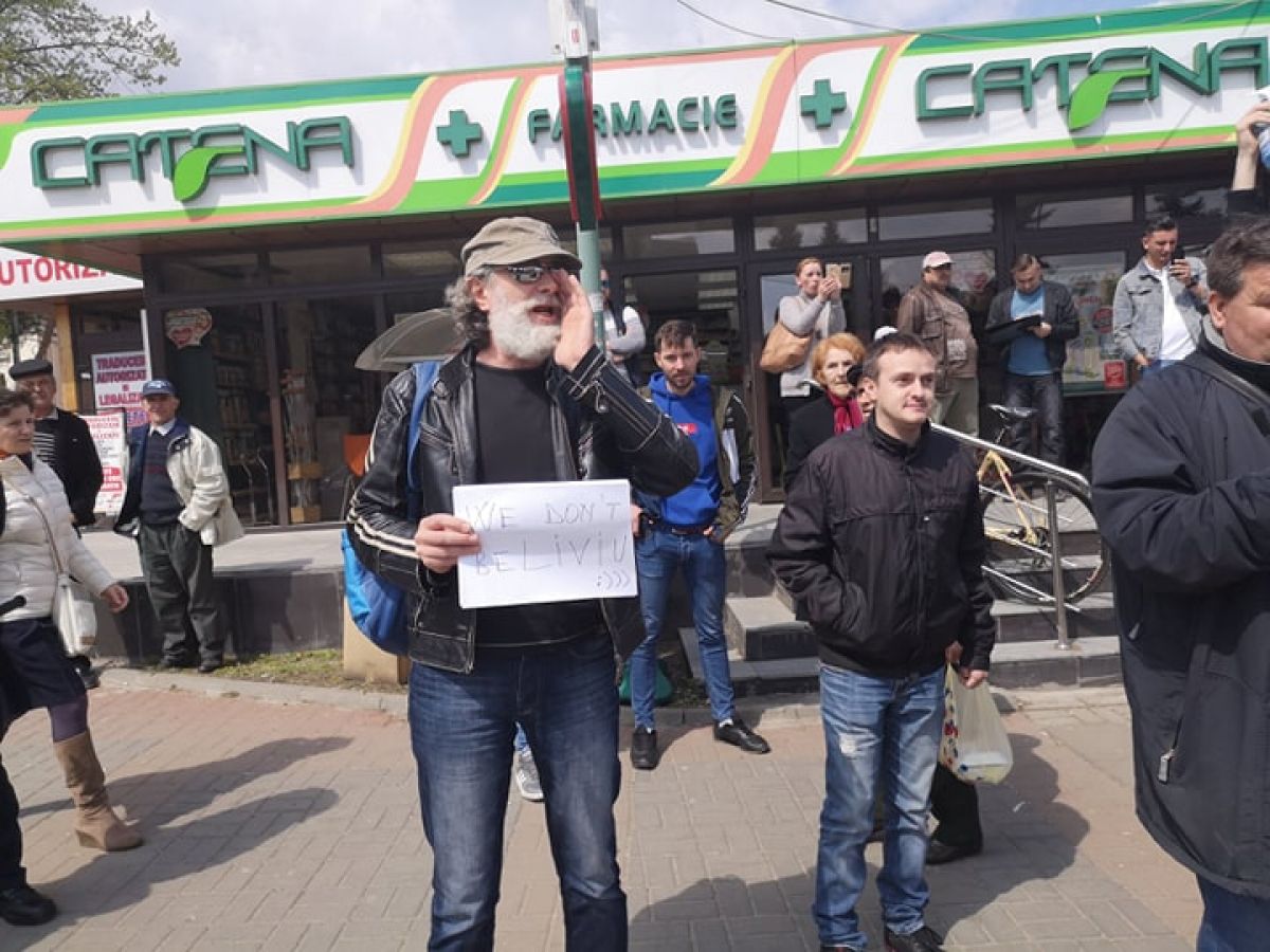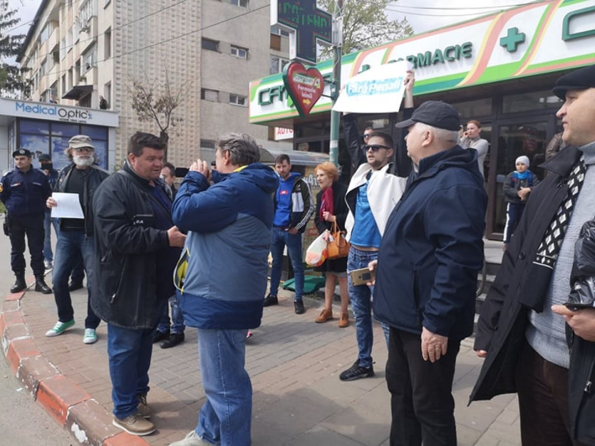 În jur de aproximativ 20 de persoane au ocupat poziţii pe strada Marchian, vis a vis de amintita instituţie de cultură, unde scandează lozinci împotriva PSD şi a preşedintelui acestui partid.