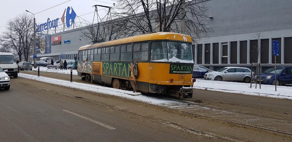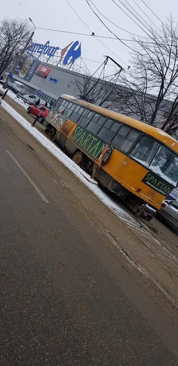 Astăzi, pe strada Sucevei a deraiat un tramvai. A fost la limită să atingă o mașină, însă din fericire, impactul a fost evitat.