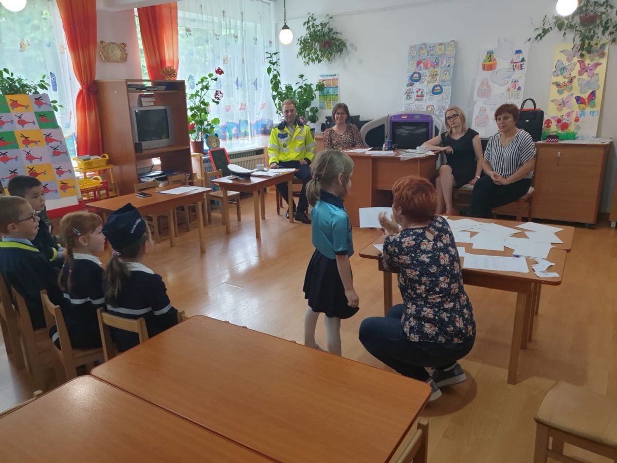 Reprezentanţii Poliției Rutiere, prezenţi printre cei mici, i-au învăţat într-un mod interactiv pe aceştia cum să devină viitori participanţi responsabili la traficul rutier, oferindu-le în acest sens pliante, postere şi reviste în care sunt explicate, prin diverse jocuri, regulile pe care micii pietoni trebuie să le respecte.