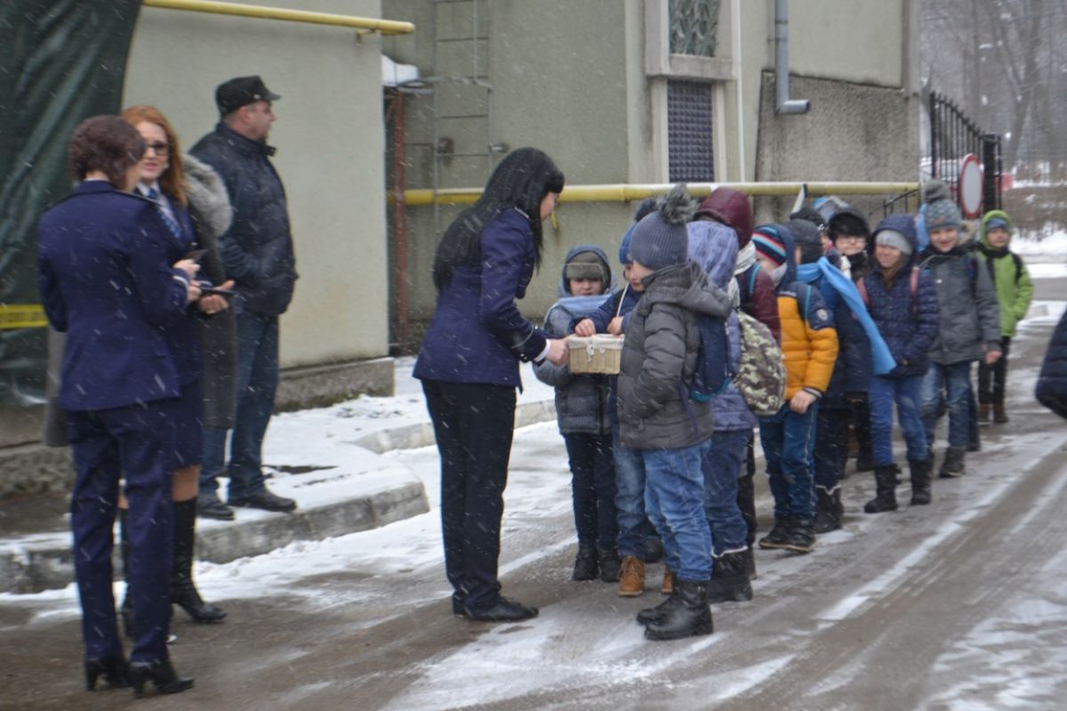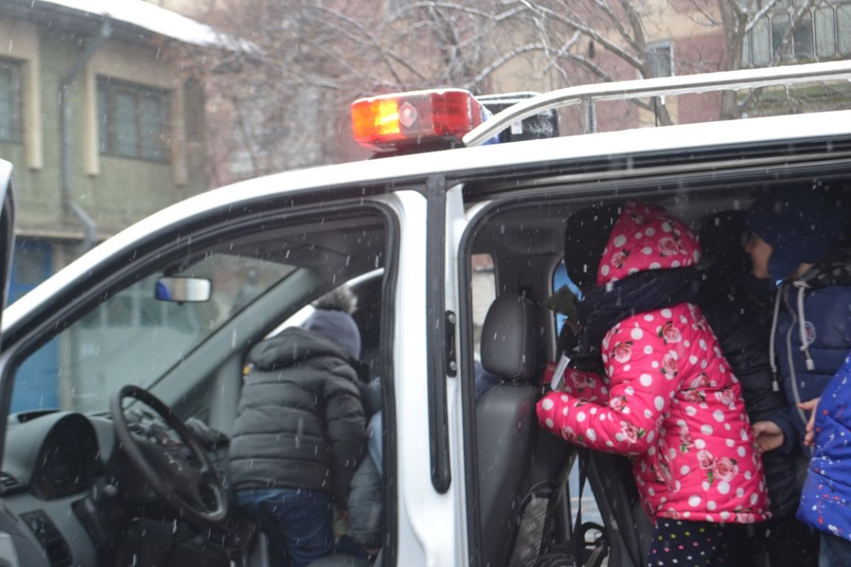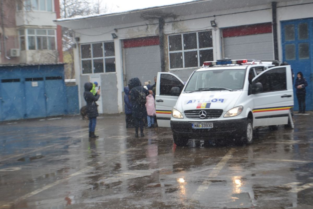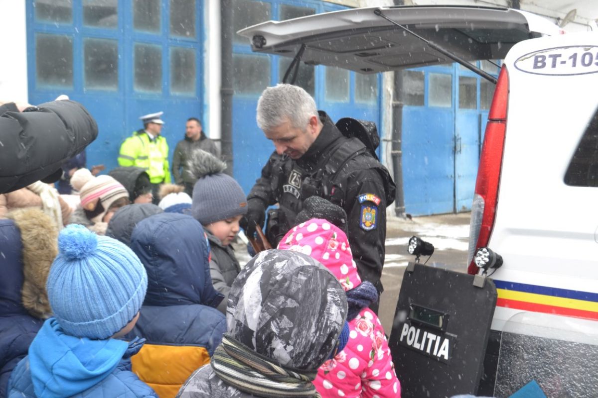 În ciuda vremii potrivnice, mai mulți copii au venit în curtea IPJ, fiind încântați de cele prezentate de polițiști.