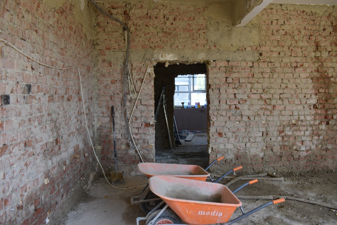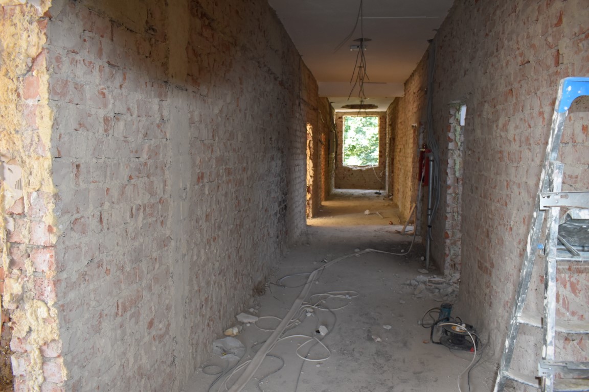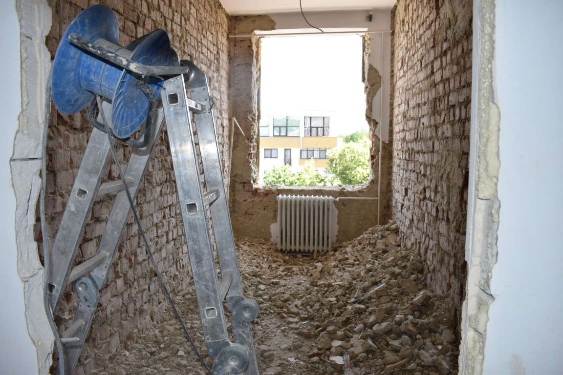 Echipele de muncitori au intervenit în corpul principal, în primă fază, unde pereții au fost decopertați până la cărămidă. În unele săli de clasă au fost scoase chiar și trei rânduri de parchet.