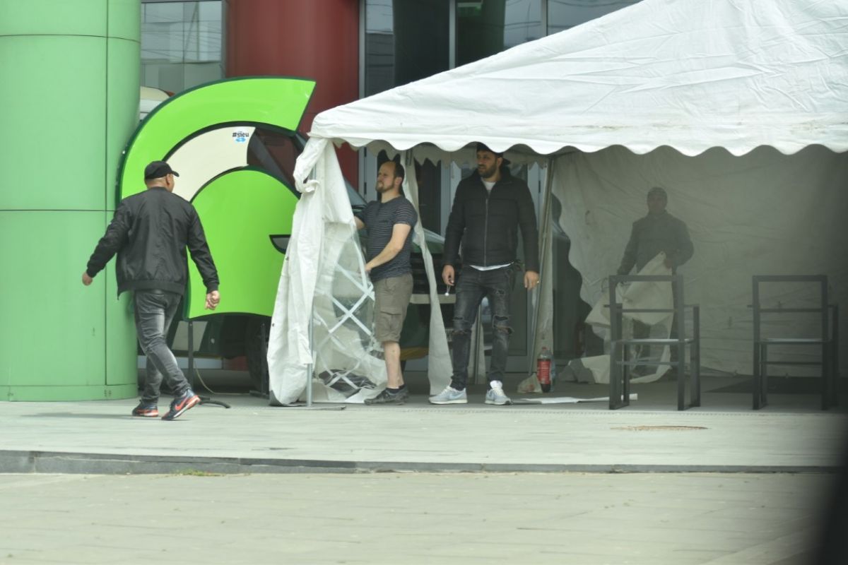 Terasele au rămas închise și pe alocuri erau văzuți angajați care făceau curățenie și spălau frigiderele pentru răcoritoare. Însă, mesele au rămas în continuare goale. În fața Uvertura Mall era puțină forfotă, cauzată de reprezentanții unui lanț de restaurante care s-au reorientat în aceste vremuri de criză și și-au amenajat unitatea în exterior pentru ca viitorii clienți să poată cumpăra produse alimentare, dar să părăsească imediat perimetrul.