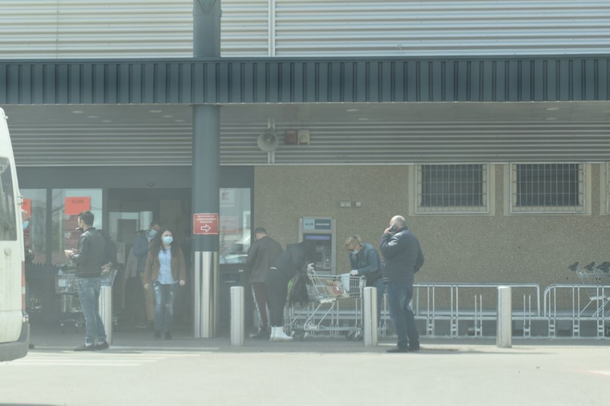 O ușoară coadă se putea observa la unul dintre hipermarketurile din municipiu, unde botoșănenii la intrare erau verificați dacă au temperatură cu un aparat special, de unul dintre angajații centrului comercial, echipat corespunzător, inclusiv cu vizieră.