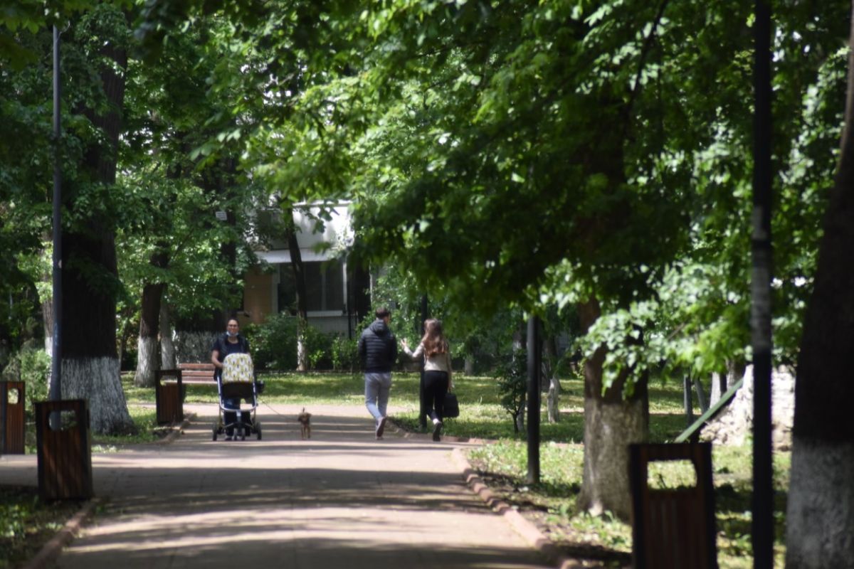 Nici parcurile nu erau foarte aglomerate, poate și din cauza temperaturile care nu au fost pe 15 mai ridicate. Câteva persoane puteau fi văzute pe bănci sau la plimbare, dar și angajați ai Primăriei care continuau activitățile de salubrizare a lacului din Parcul Mihai Eminescu.