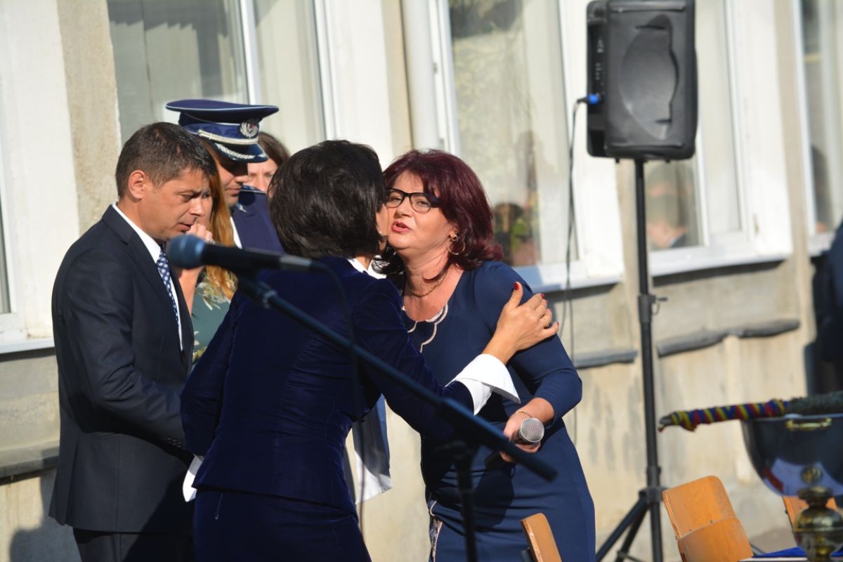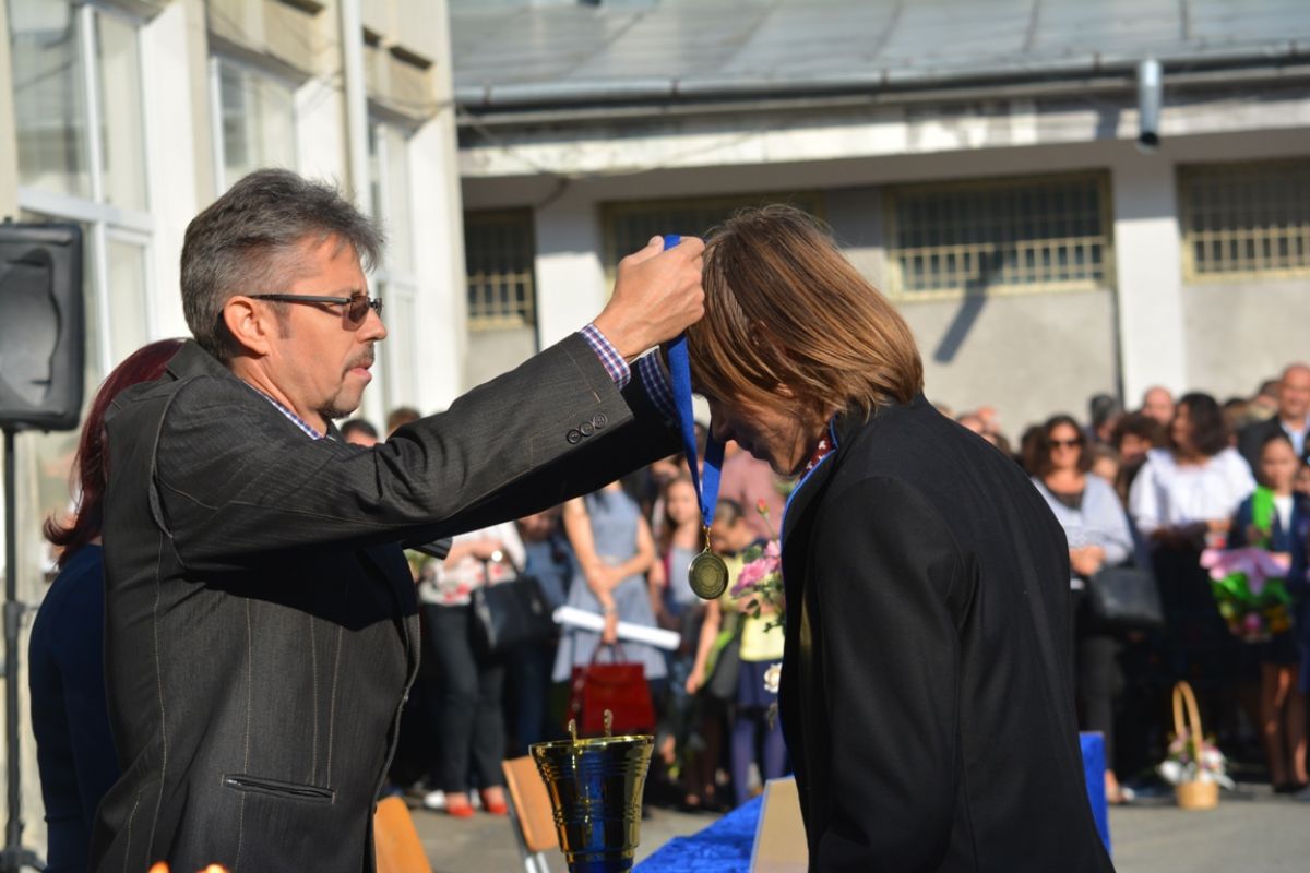 În lipsa prefectului, plecat în delegaţie, Daniela Beclea a vorbit doar 37 de seunde, Gabriel Hârtie a citit din nou mesajul mobilizator al ministrului, iar parlamentara a evitat să ia cuvântul întrucât printre elevi se afla şi fiica sa, care începe clasa a V – a la prestigioasa unitate de învăţământ. Aşa că discursul cel mai lung l-a avut Cristina Chiriac, directoarea Colegiului, care a reamintit rezultatele extraordinare obţinute de elevii de aici, prilej cu care l-a premiat pe „cel care ne-a umplut inimile de bucurie”, Ştefan Bălăucă, care în vacanţa de vară a obţinut medalia de aur la Olimpiadă Internațională de Științe ale Pământului. Acesta a primit „cupa succesului”, diploma de excelenţă şi „medalia de onoare” în aplauzele tuturor celor prezenţi.