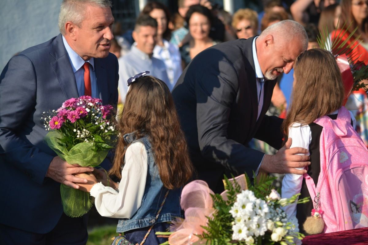 Iar Şcoala 11 din municipiul reşedinţă a fost una dintre primele borne. La 8:30 curtea era deja plină ochi şi după intrarea preşedintelui Consiliului Judeţean, Costică Macaleţi, care a avut doar de traversat strada fiindcă locuieşte la blocul de peste drum, directoarele au dat startul ceremoniei, mai ales că inspectorul şcolar general se afla deja acolo.
