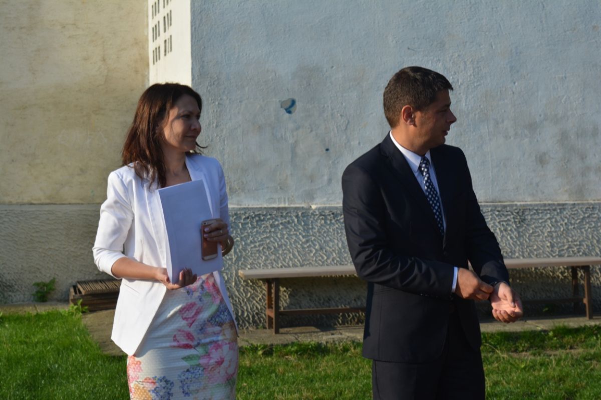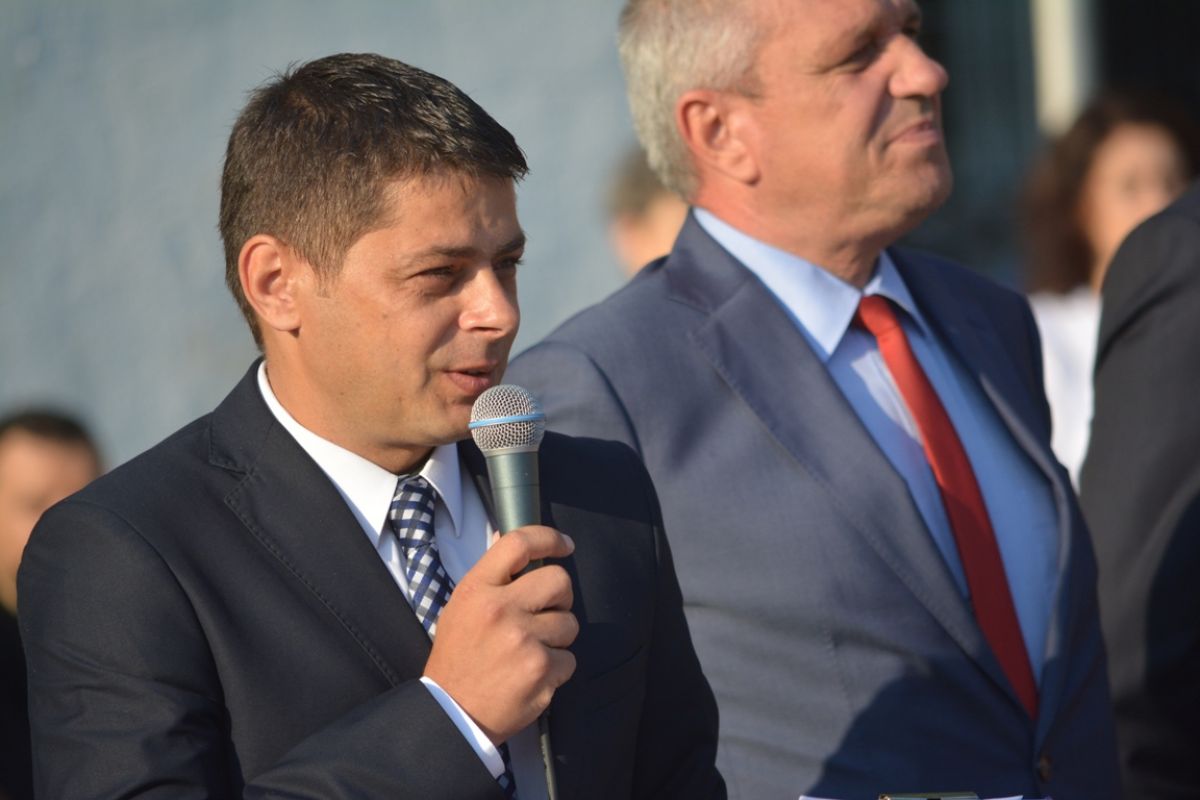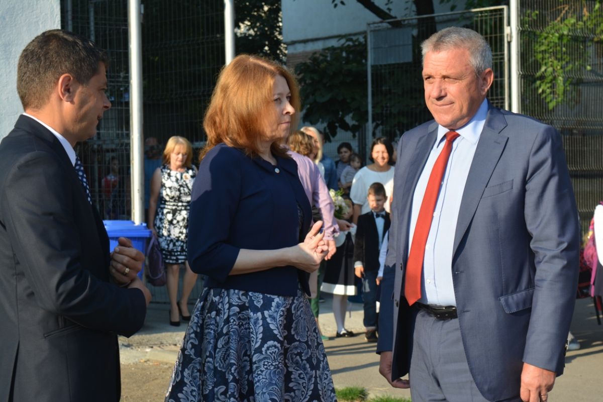 Între timp la festivitate ajunsese şi senatorul Costel Şoptică, pe care directoarele şcolii l-au observat cu întârziere şi căruia i-au dat într-un final cuvântul, parlamentarul informându-i pe toţi cei prezenţi că la bază este profesor. Oricum, la final atât el cât şi preşedintele CJ au primit flori din partea a două eleve, lucru care la „Eminescu” i s-a întâmplat şi subprefectului.